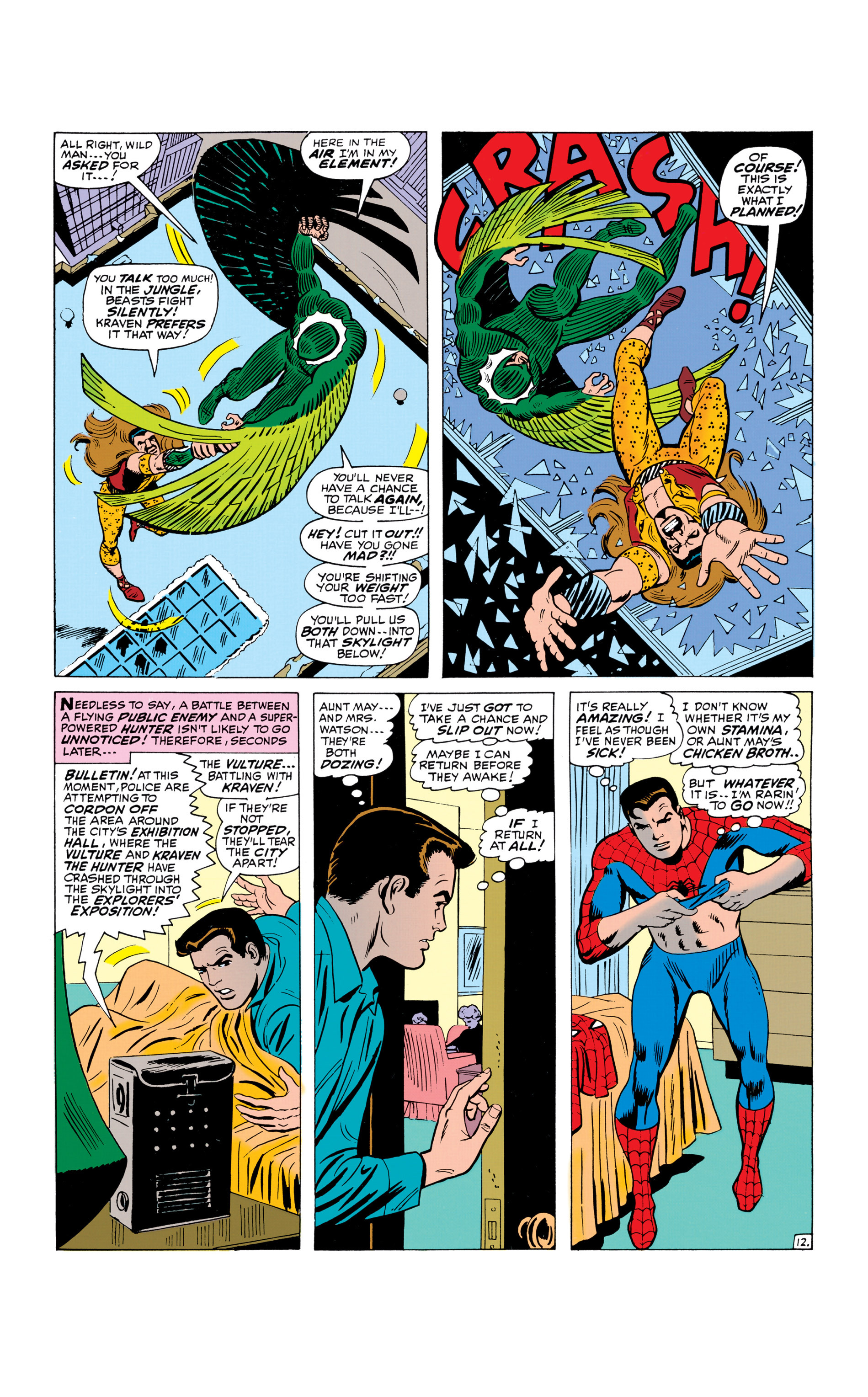 Spider-Man's physiology also gives him a healing factor. Obviously he's no Wolverine or Deadpool, but he has some pretty decent regenerative feats. He recovered from the worst flu a doctor had ever seen in minutes, recovered from Swarm's bee stings the fastest, recovers bruises in implied short periods of time and regenerates broken bones within a single day. I was also going to bring up the time Spider-Man was blinded and regenerated his sight but then I realized that wouldn't be specific enough because that actually happened twice (clearly he needs to start wearing protective eyegear). The first time it took hours, the second time he got acid burns to the eyes and was blinded yet his vision began to recover in minutes at most and was fully healed a bit later.