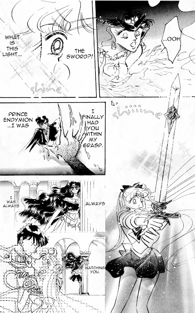 I'm gonna be honest, none of the other chapters are even close to as good as the final chapter of Codename: Sailor V in my opinion. This is the chapter where it starts being Sailor Moon, my favorite series of all time. As Minako sees everything start being destroyed from the last chapter, she flashes back to her past life, yelling in panic that it can't happen again, an incredibly emotionally intense moment of suddenly awakening to her true identity as Sailor Venus. And that's just the start. The final battle with Danburite is a thing to behold, and the resolution of Minako's internal conflict is tragic and beautiful; that the Goddess of Love to protect all love would be cursed to never find it herself. After the battle Sailor Venus' determination is felt in every line on the page and her statement that everything she thought she was just a brief disguise, the true battle begins here and she must find her princess and allies is the kind of intense gravitas and pathos I love for as well as the cosmic science-fantasy concept of immortal beings living and remembering many lives is an example of that which makes me love Sailor Moon. This chapter is beautiful, intense, full of amazing moments, psychologically interesting, symbolically fascinating and exactly why the SM Manga has been my favorite series since the first time I read it.