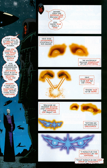 The Lost Canvas vs. Final Crisis: TLC vs Final Crisis is interesting because despite FC being much shorter, it's strengths and weaknesses are far more pronounced than TLC. FC is the Episode G of DC Comics, its most out there insane interpretation, while TLC is more like one of the "safer" crisis if it even would be compared to a crisis event. I feel like FC is just as personal as TLC but in a differnt way. TLC is broadly about the relationship between Alone (Hades), Sasha (Athena), and Tenma the protagonist. Final Crisis is so archetypal it's not even really about characters anymore so much as it is about Grant Morrison's personal relationships with life, the comics industry and the rivalry Morrison has with Alan Moore. On some level I kinda like that, it's a trend I want series to do more, to be more connected to all these different subjects and topics but on another hand it is kinda alien. Despite the fact that two of the three main characters of Lost Canvas are the incarnations of abstract concepts in a similar vein to Final Crisis' new gods, they come across very human. Despite my love for Final Crisis I don't think I understand it enough yet. While I intuitively felt TLC, I think I need to understand more about DC before understanding FC. When I do that, I probably will like it more but as of right now I probably prefer TLC.