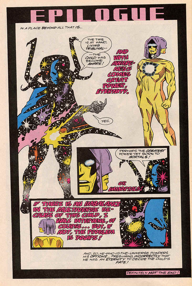 In the reality of Earth-691, the Universal Church of Truth has become a dominant force in the universe in the 31st century, worshiping Adam Magus, the evil self of Adam Warlock. However Adam Magus had died long before and so they set about using his technology and magic to create their new messiah. This worked far too successfully, and some strange inter-dimensional power source was born to the new infant.