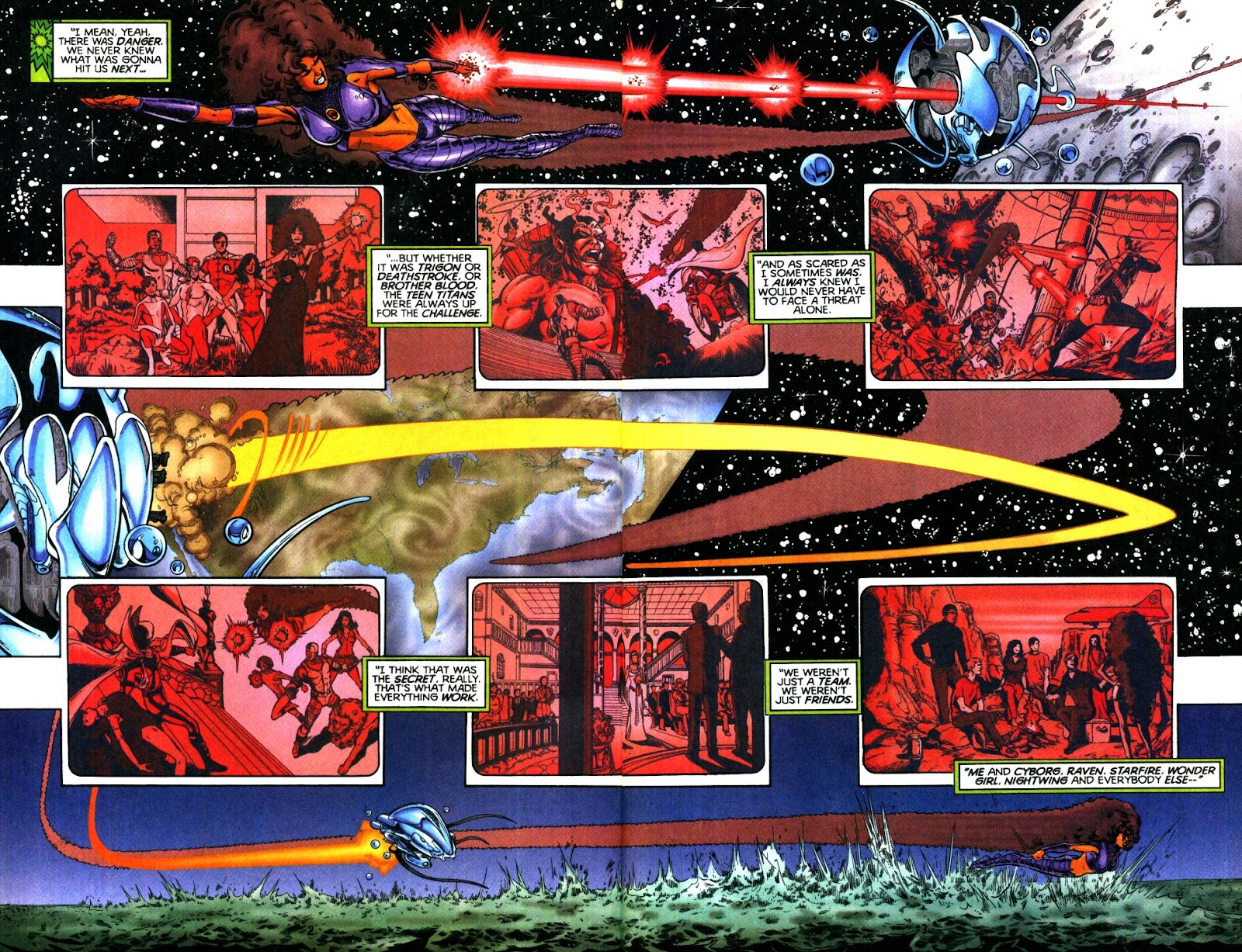Speaking of that series and nostalgia, looks like you gave this blog the only track it needs! Thanks for that, ended up listening to it on loop the entire time reading this. I only knew Starfire from the cartoon show so it was quite eye-opening to get a full report on the breadth and magnitude of her powers. Thanks for another awesome DC blog!