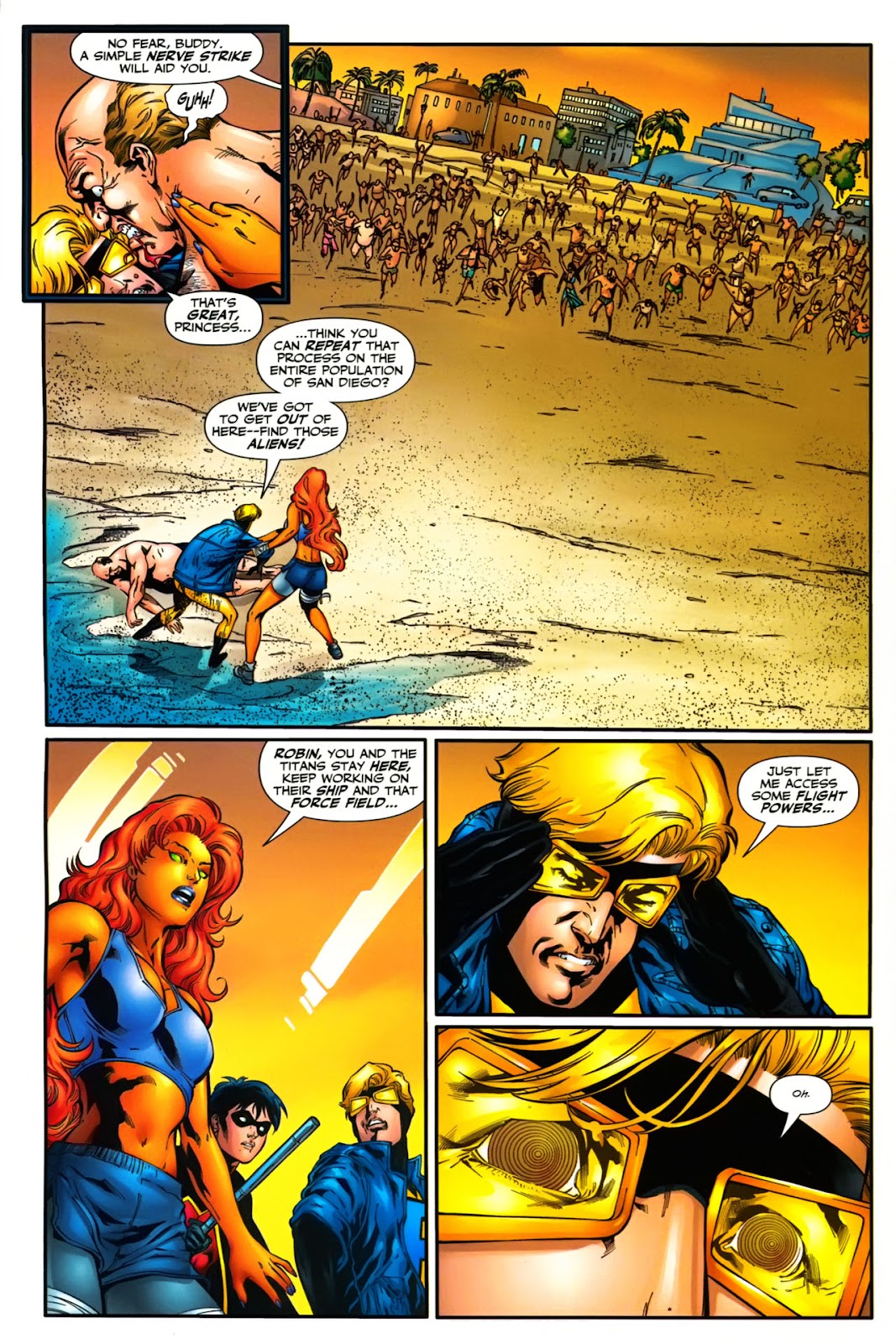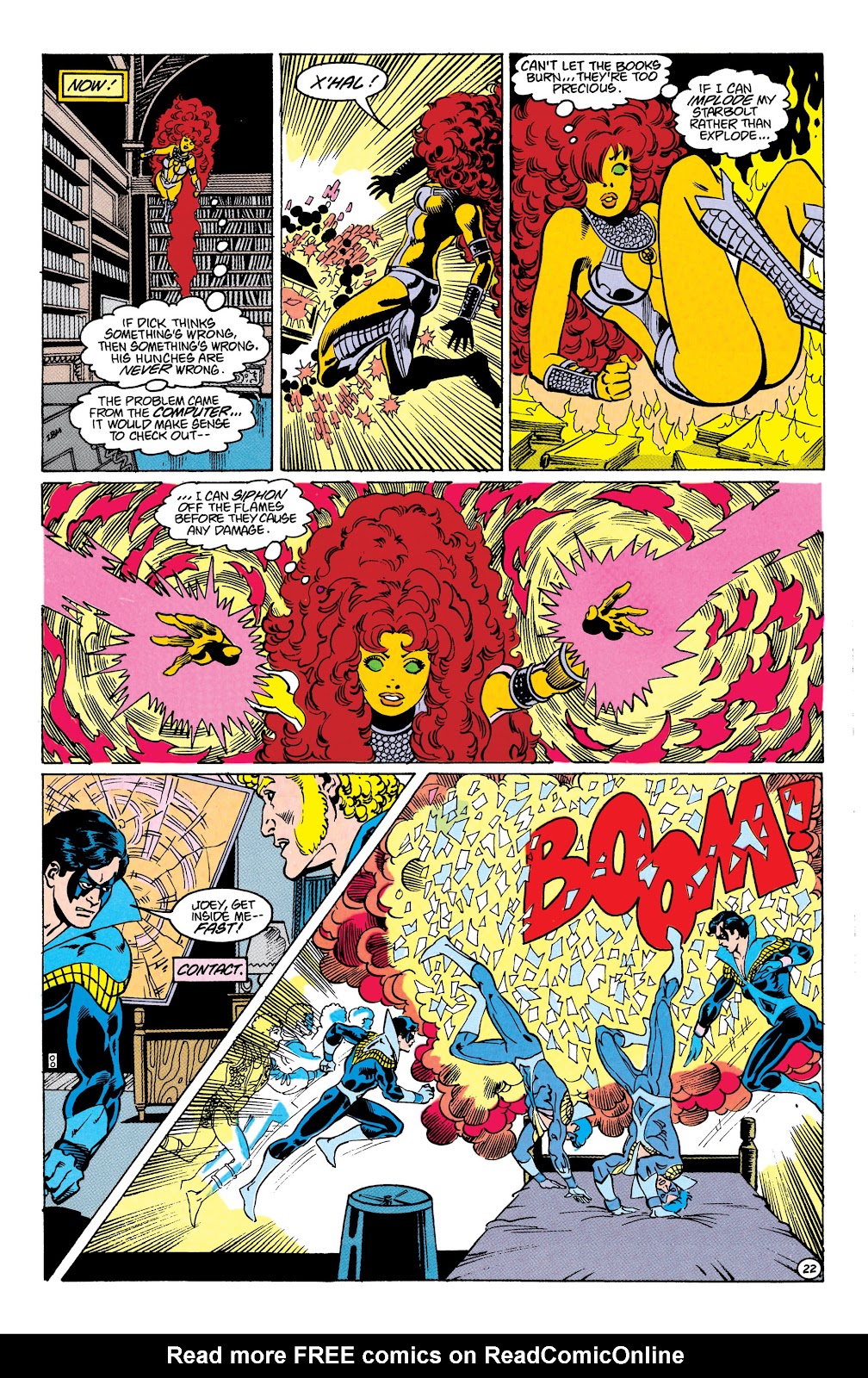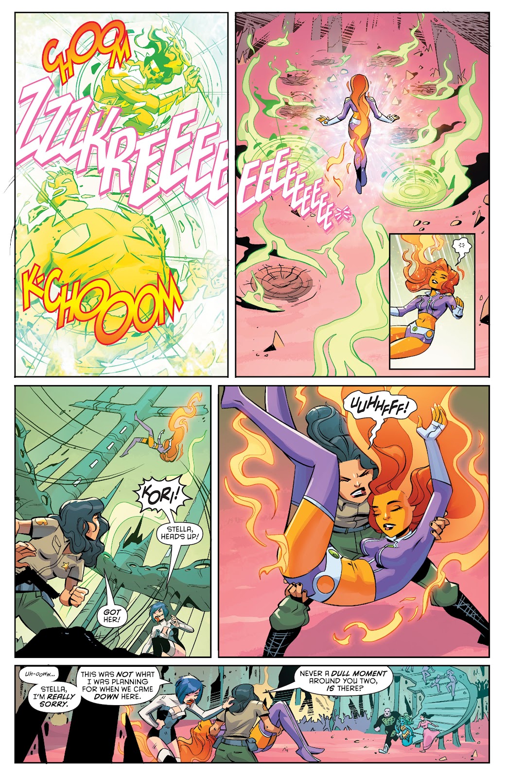 First usage of energy-draining, Starfire can make her starbolts implode rather then explode, sucking up nearby energy. Speaking of which...