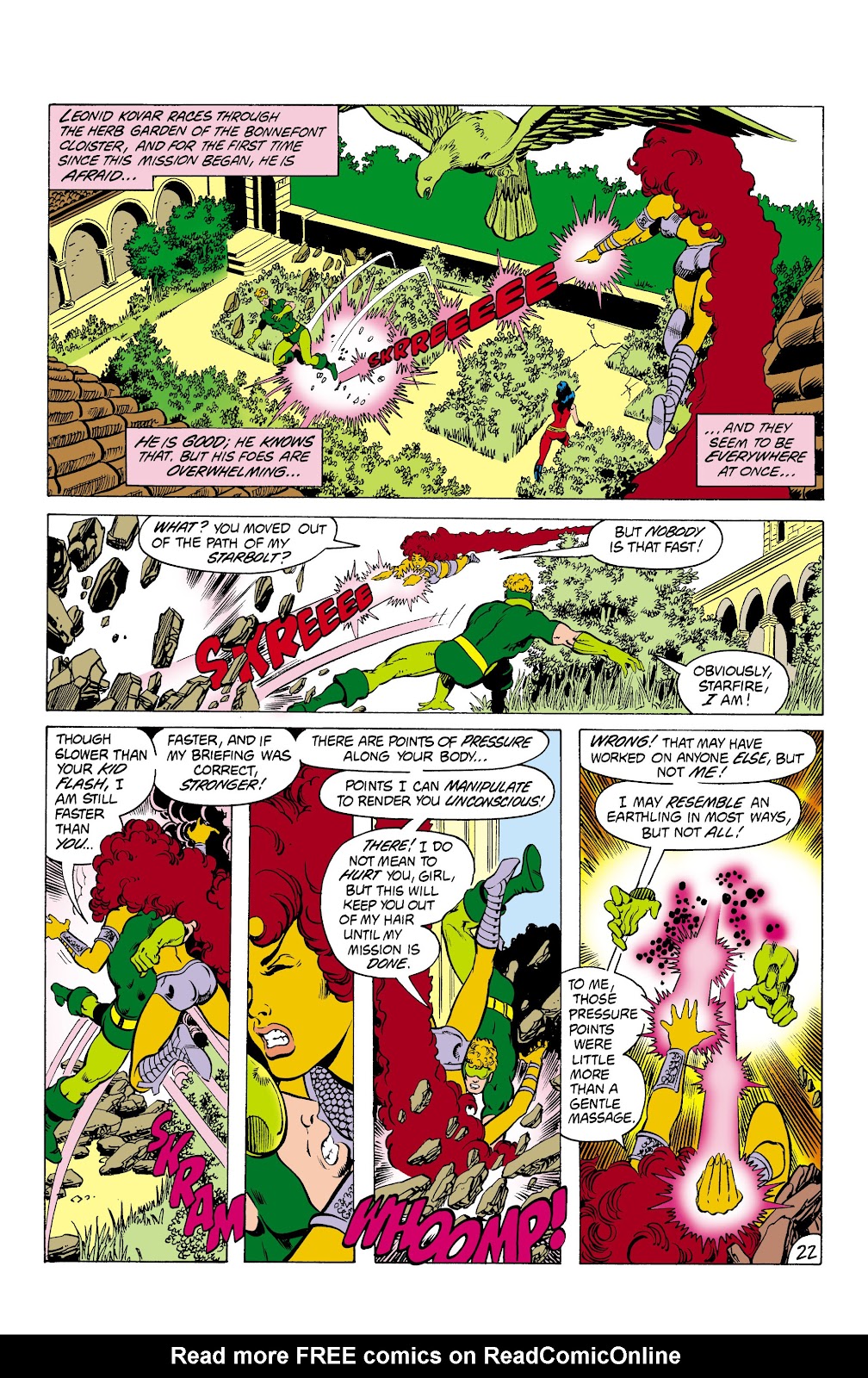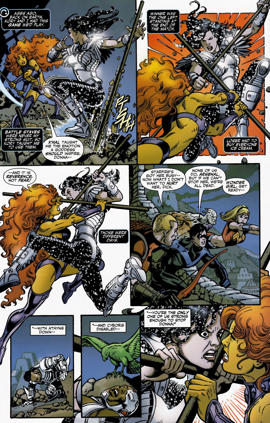 Starfire's skill is like that of an Amazon, a race of immortal warrior women who have trained in the arts of war for thousands of years. In a way Starfire is more of an Amazon then Donna Troy ever was. Starfire can spar with the Amazon Artemis. Starfire was able to best Donna Troy in skill 4 times in a row. And outside of Starfire, only Wonder Woman was able to best Donna Troy in skill. Fittingly Starfire was said to rival Wonder Woman herself in skill. Bear in mind that Wonder Woman regularly fights Ares, who is all conflicts across history, all war and fighting skills. Also when Donna was the Mad Titaness Troia, Starfire was again able to match Troia in skill despite Troia trying to kill Starfire this time.