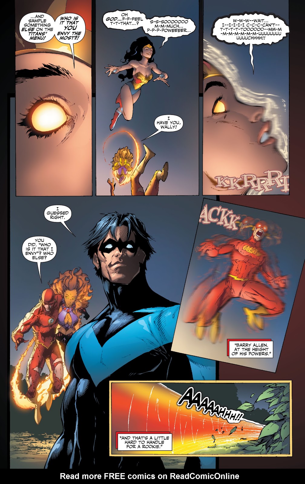 Starfire is also holding back constantly as her full power (IE Nova) is highly draining to her. She also once claimed she was Honor Bound to introduce herself. This has only come up once.
