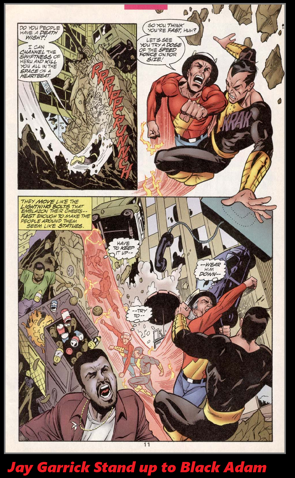 In terms of power, while Jay Garrick never learns the Infinite Mass Punch per se, he does have the abiltiy to use his speed energy to absorb kinetic blows and to deliver some of his own. He's been able to fight Black Adam