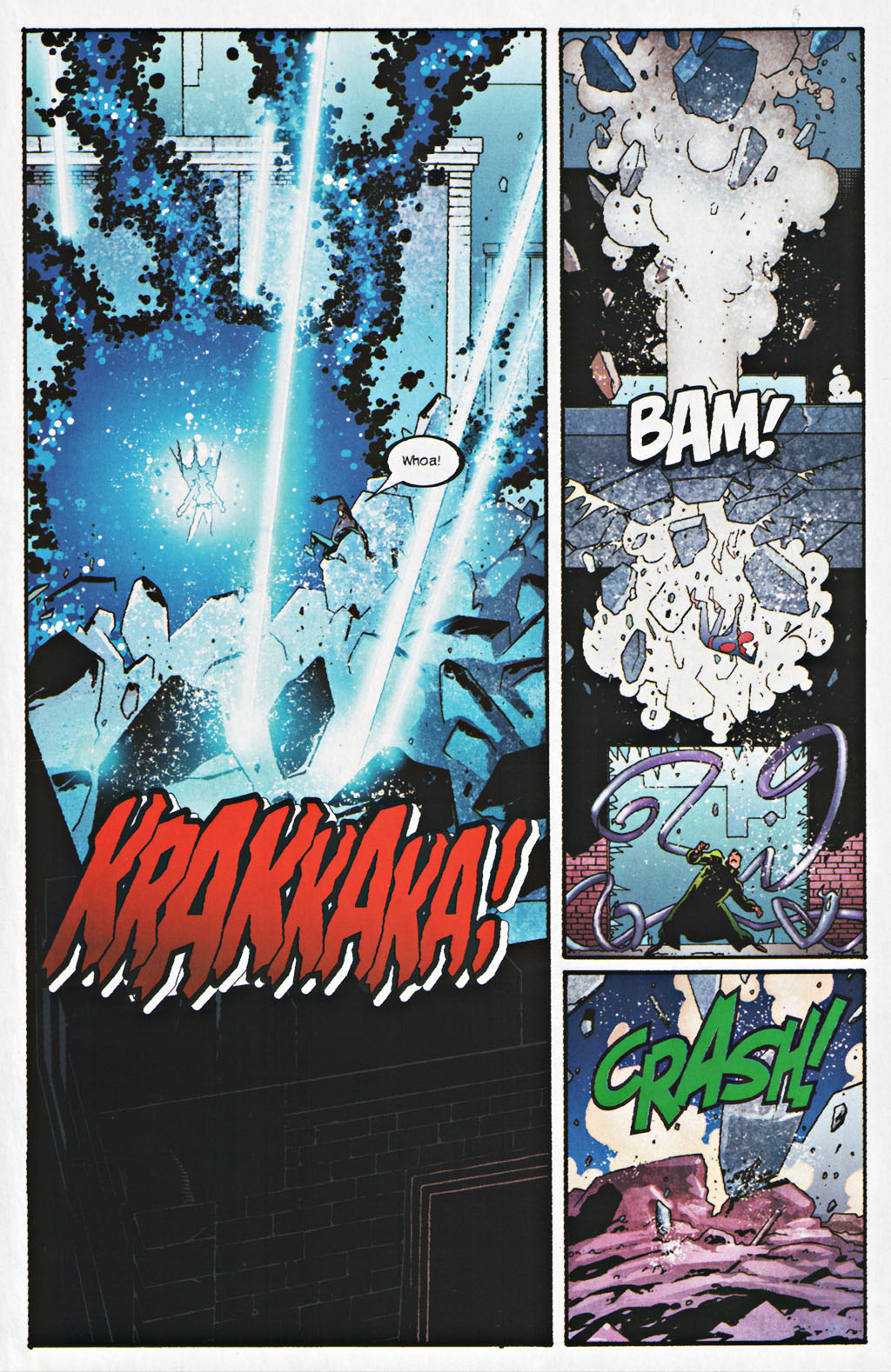 1: Spider-Man violently destroys Doctor Octopus' arms which survived a nuclear blast usually calced to be between hundreds of tons of tnt to kilotons