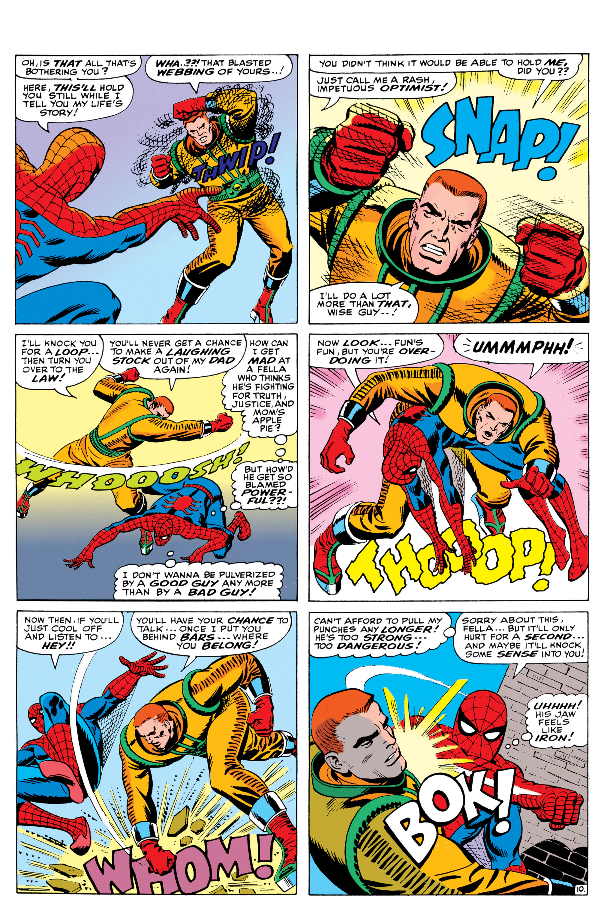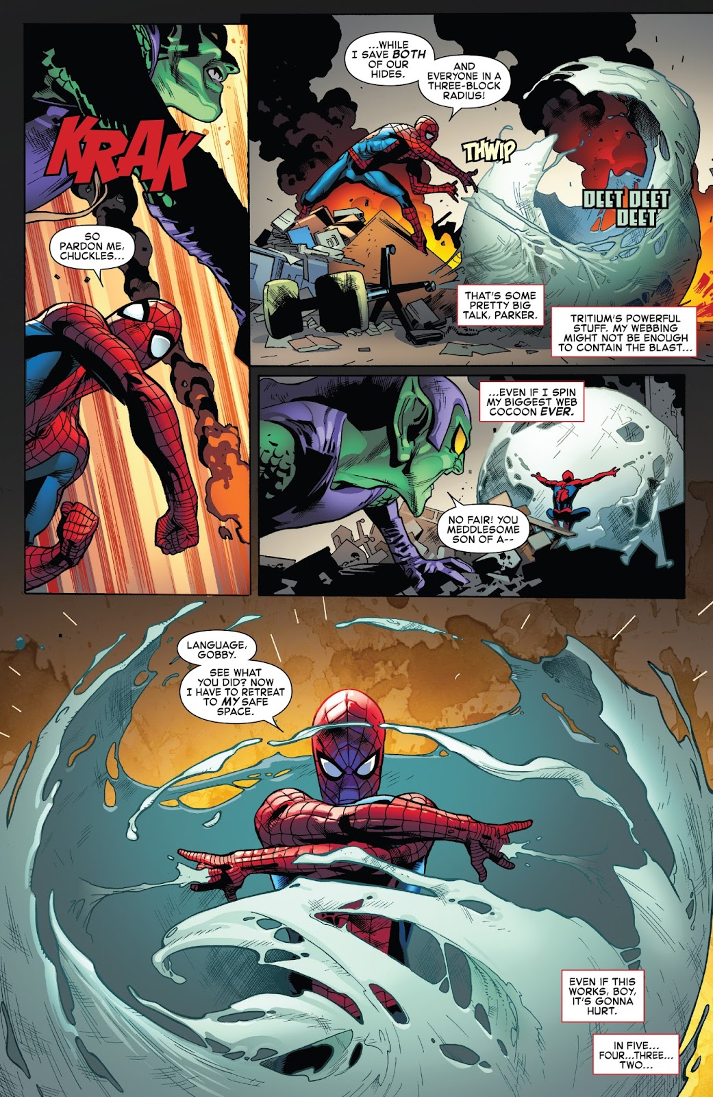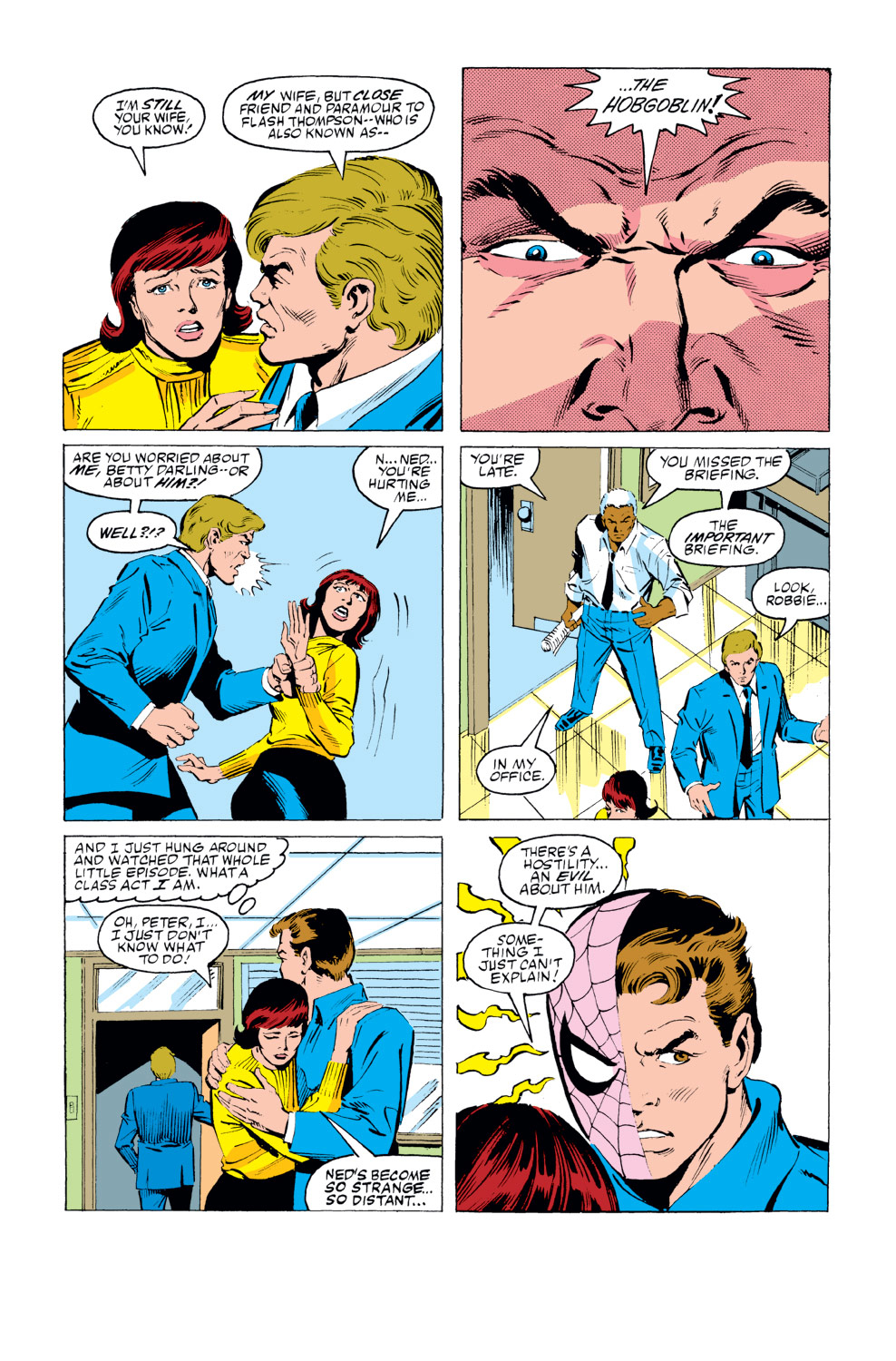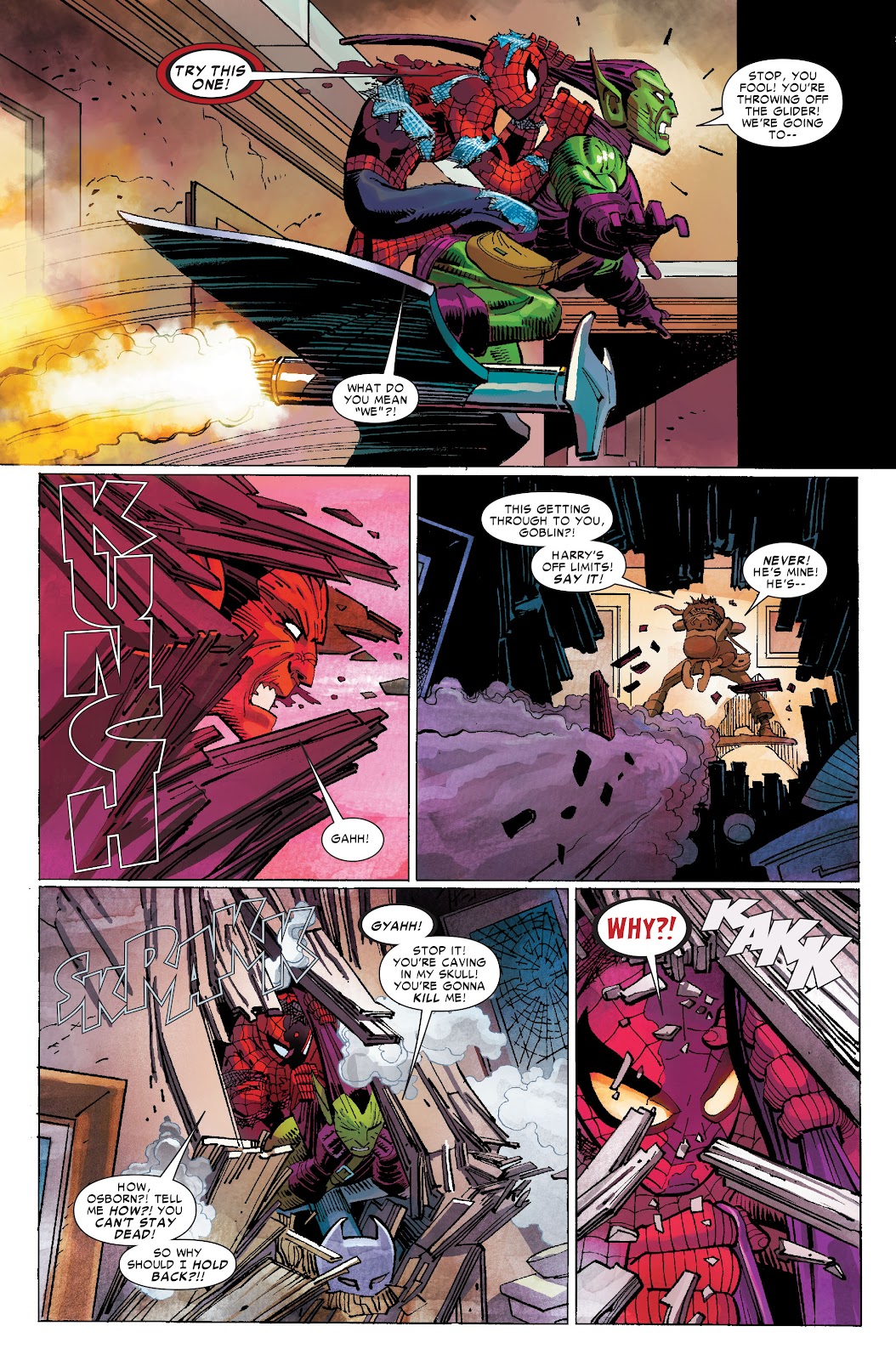 Full power Spider-Man can also stomp his other sometimes arch-nemesis, the Green Goblin. While the Green Goblin is normally relative to Peter, at his full power Spider-Man easily crushed his hands and despite being shot was able to cave in his skull. When Spider-Man was highly sick and weakened by his sickness he was able to one-shot knockout the Green Goblin by putting everything into one strike and a determined Spider-Man was able to slug it out with an amped goblin (albeit the amp didn't seem to be very massive.) This is true across time as well. Back when Green Goblin killed Gwen Stacy, Spider-Man completely dominated him their next fight in a rage and just recently despite being weakened from his fight with Red Goblin, Spider-Man thinking about his loved ones allowed him to beat Green Goblin. This also happened with Hobgoblin. when Spider-Man threw everything he had at him, he completely wasted Hobgoblin with Hobgoblin admitting Spidey completely overwhelmed him and he didn't have a chance.