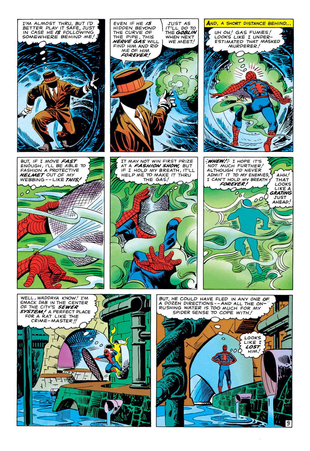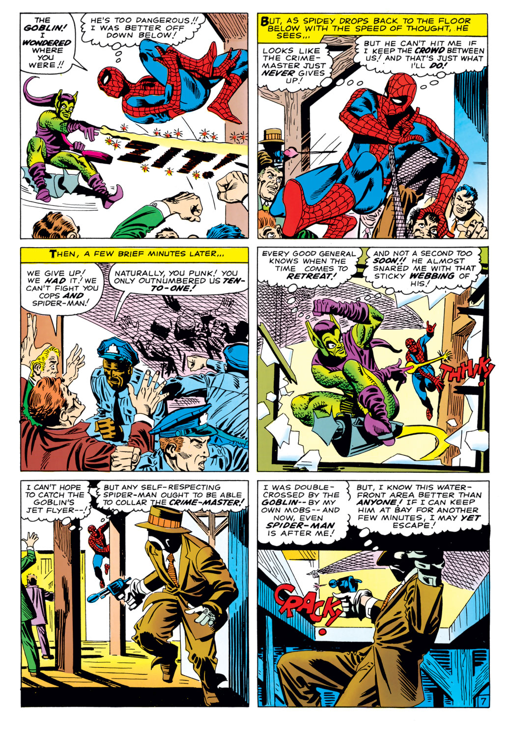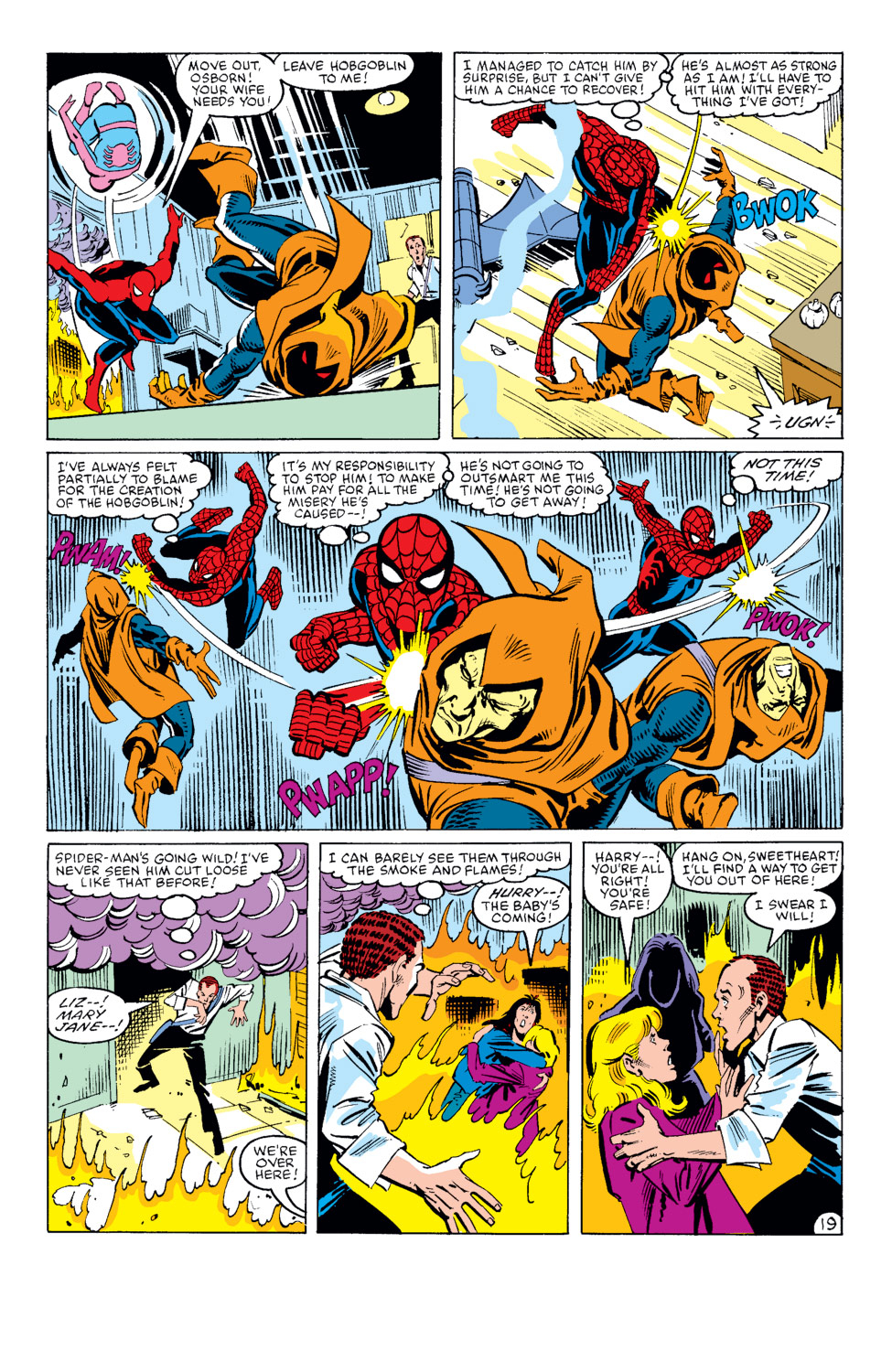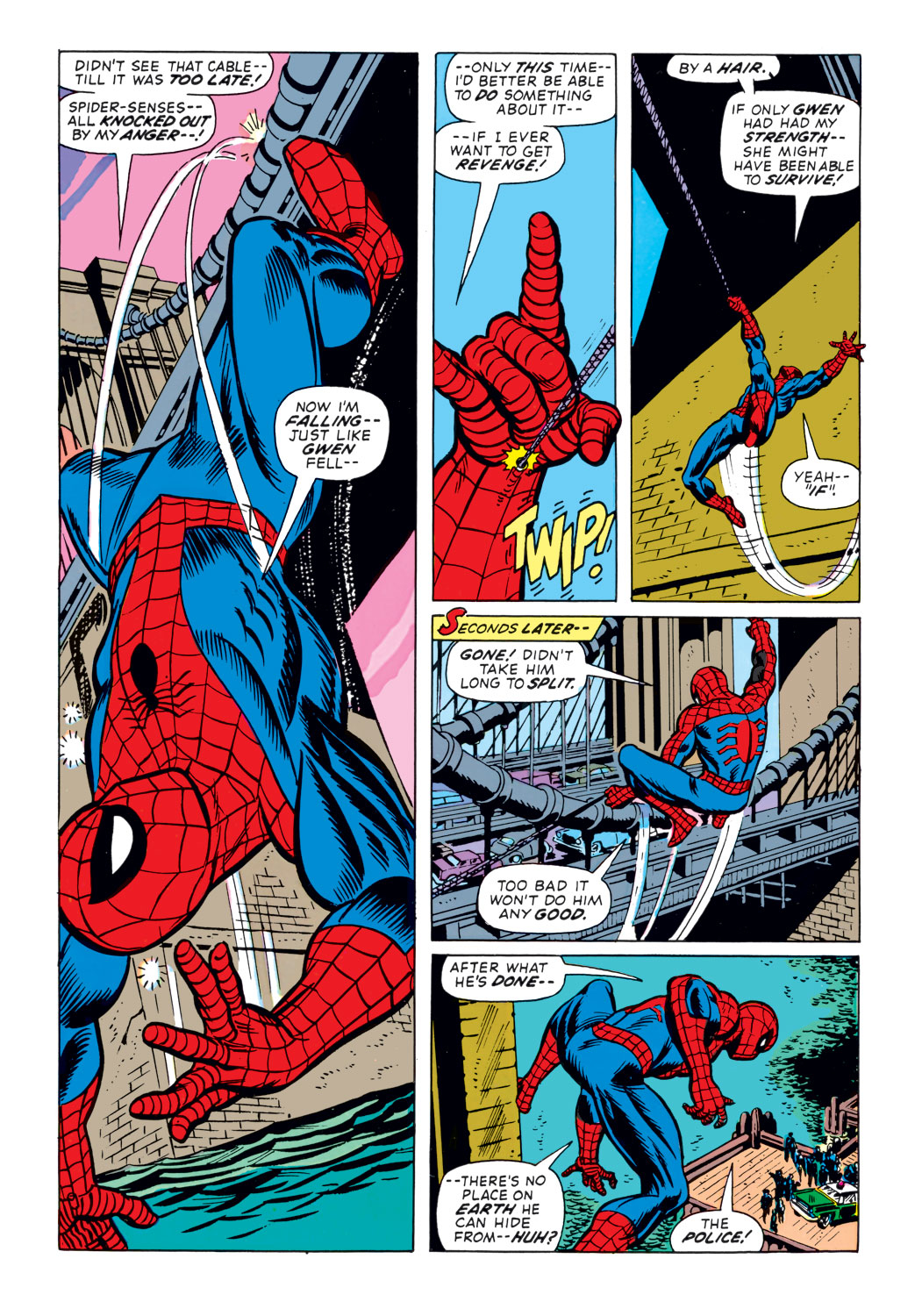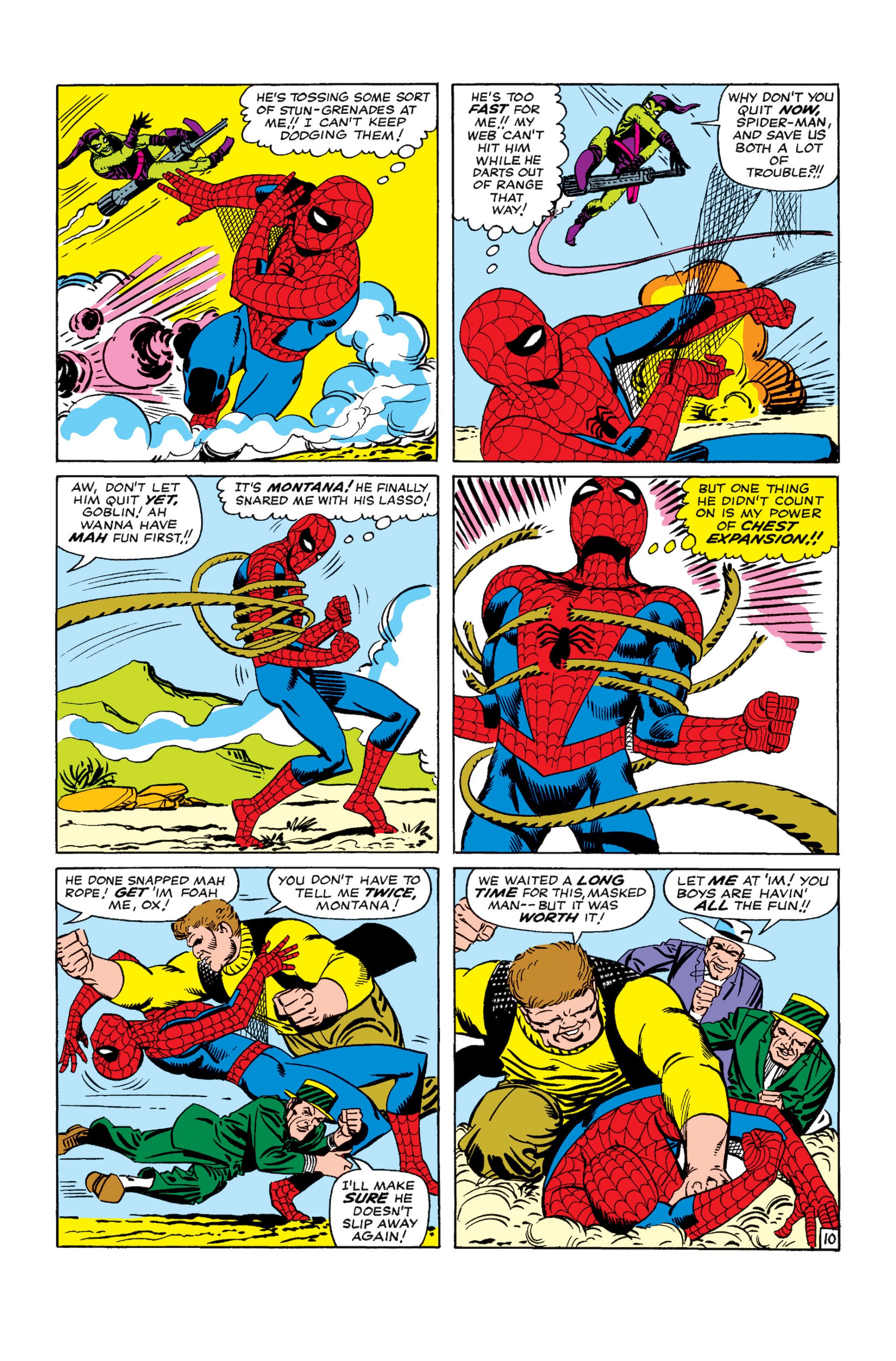 Full power Spider-Man can also stomp his other sometimes arch-nemesis, the Green Goblin. While the Green Goblin is normally relative to Peter, at his full power Spider-Man easily crushed his hands and despite being shot was able to cave in his skull. When Spider-Man was highly sick and weakened by his sickness he was able to one-shot knockout the Green Goblin by putting everything into one strike and a determined Spider-Man was able to slug it out with an amped goblin (albeit the amp didn't seem to be very massive.) This is true across time as well. Back when Green Goblin killed Gwen Stacy, Spider-Man completely dominated him their next fight in a rage and just recently despite being weakened from his fight with Red Goblin, Spider-Man thinking about his loved ones allowed him to beat Green Goblin. This also happened with Hobgoblin. when Spider-Man threw everything he had at him, he completely wasted Hobgoblin with Hobgoblin admitting Spidey completely overwhelmed him and he didn't have a chance.