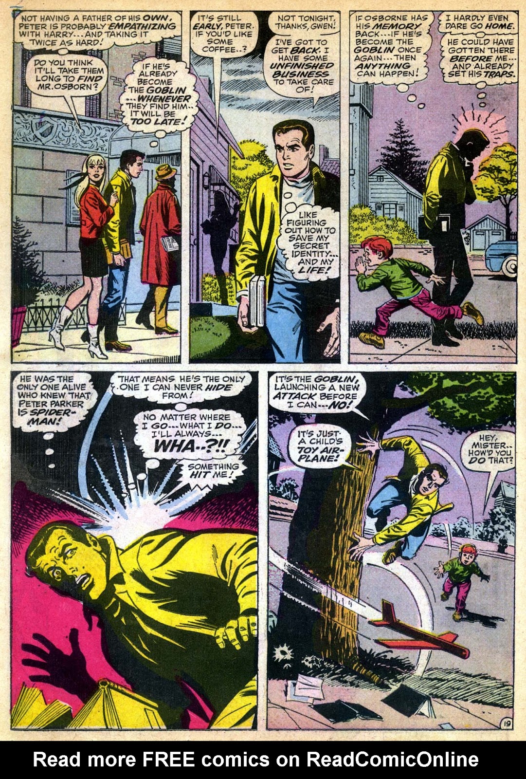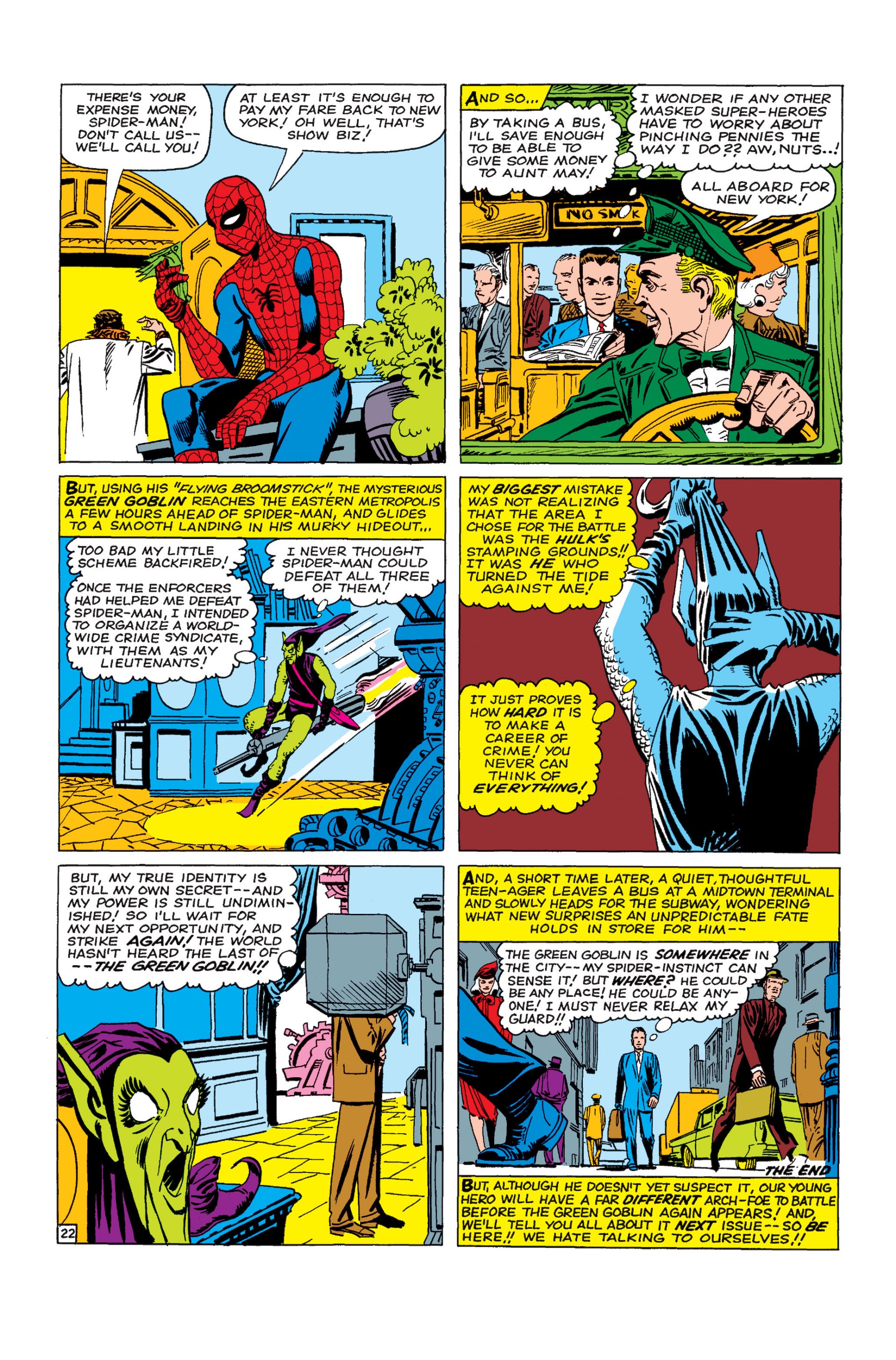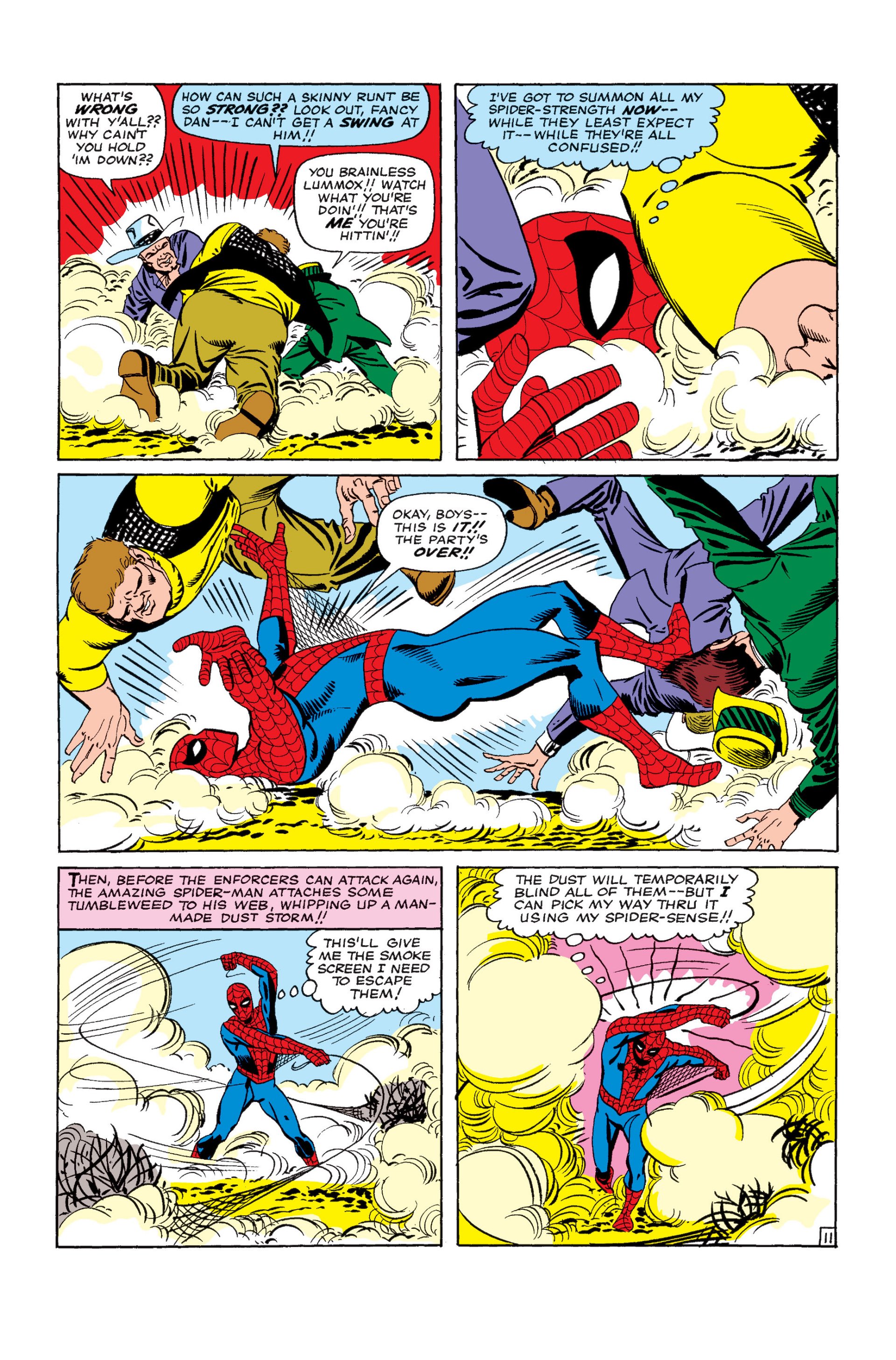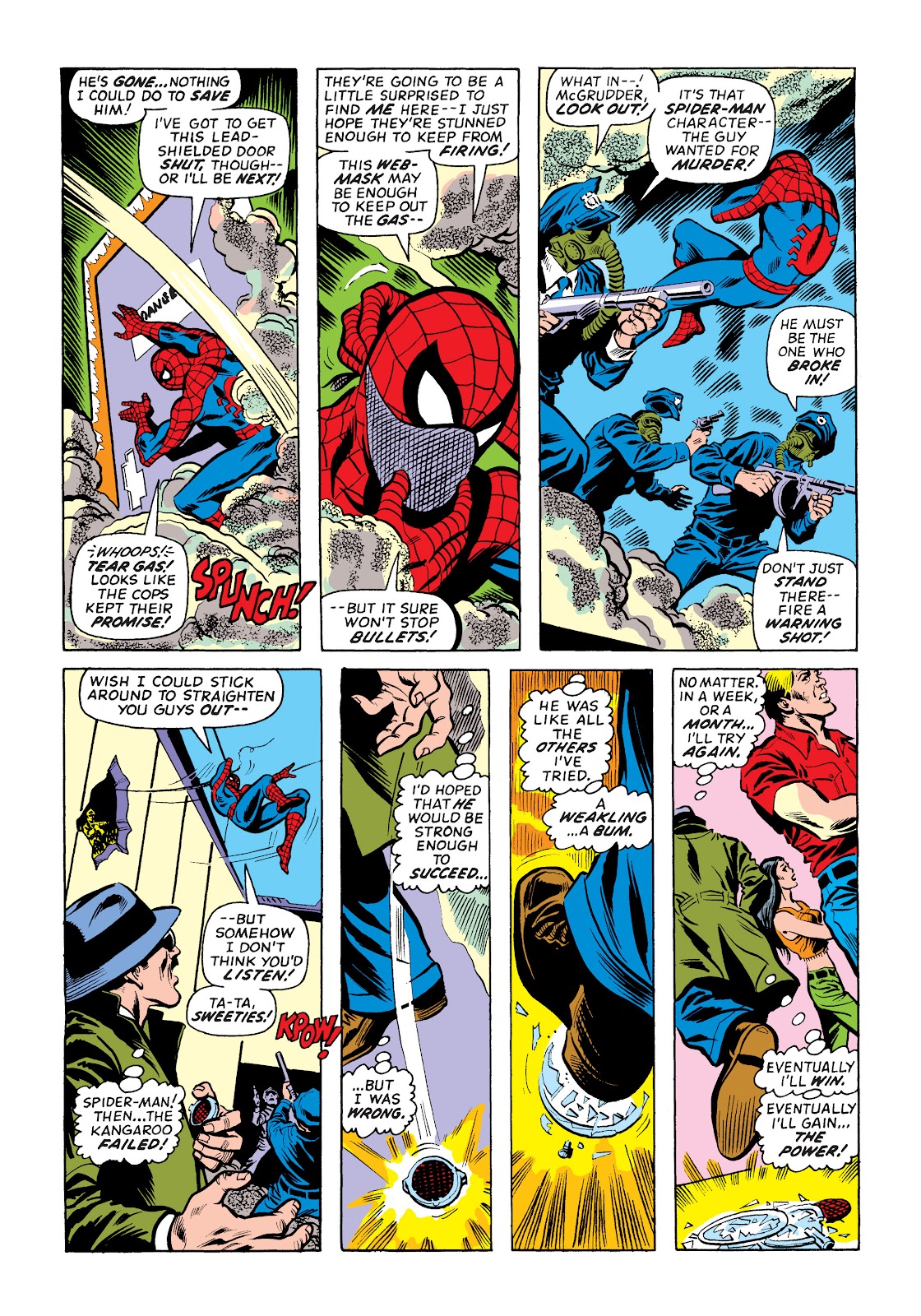 Full power Spider-Man can also stomp his other sometimes arch-nemesis, the Green Goblin. While the Green Goblin is normally relative to Peter, at his full power Spider-Man easily crushed his hands and despite being shot was able to cave in his skull. When Spider-Man was highly sick and weakened by his sickness he was able to one-shot knockout the Green Goblin by putting everything into one strike and a determined Spider-Man was able to slug it out with an amped goblin (albeit the amp didn't seem to be very massive.) This is true across time as well. Back when Green Goblin killed Gwen Stacy, Spider-Man completely dominated him their next fight in a rage and just recently despite being weakened from his fight with Red Goblin, Spider-Man thinking about his loved ones allowed him to beat Green Goblin. This also happened with Hobgoblin. when Spider-Man threw everything he had at him, he completely wasted Hobgoblin with Hobgoblin admitting Spidey completely overwhelmed him and he didn't have a chance.