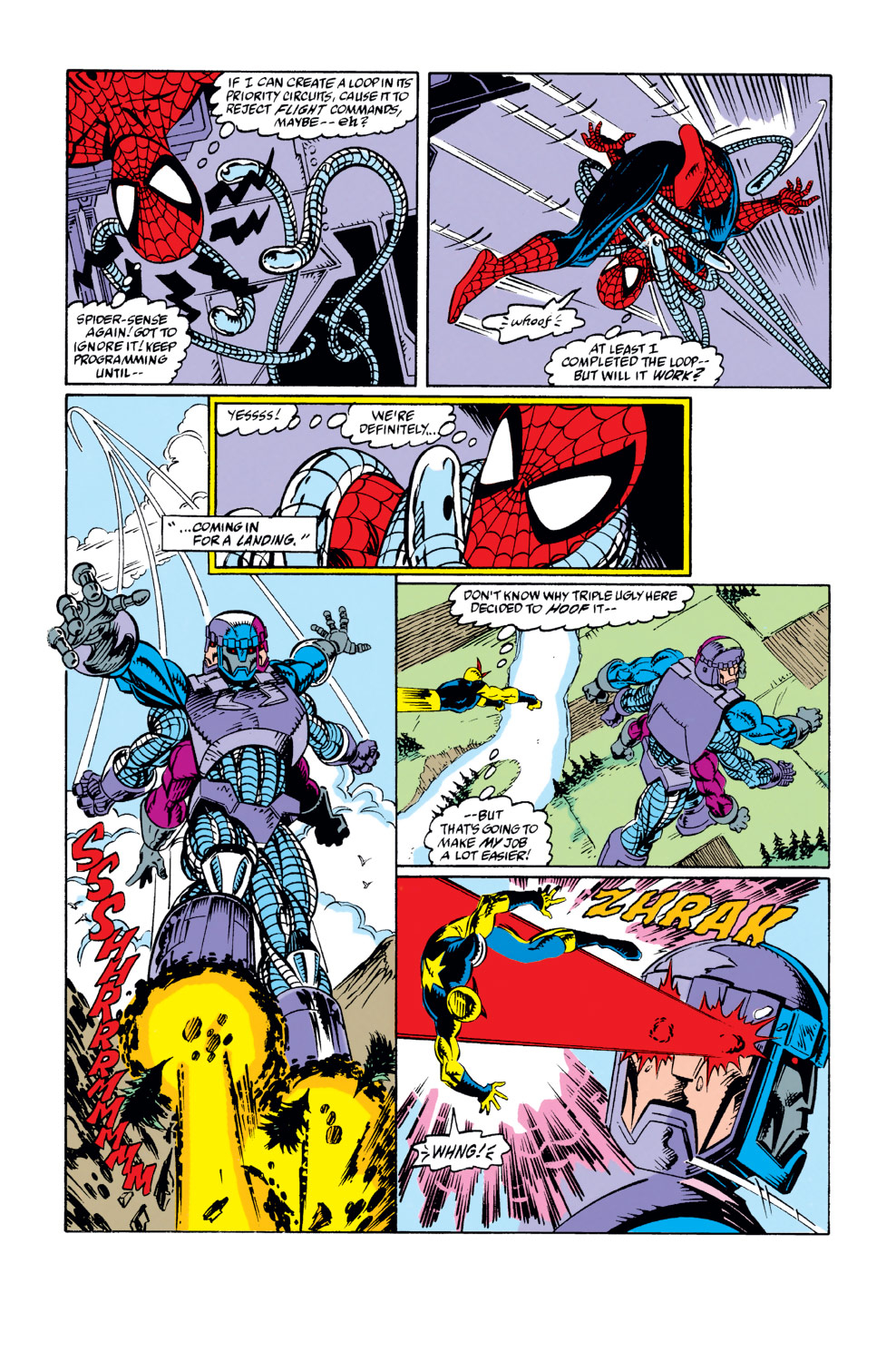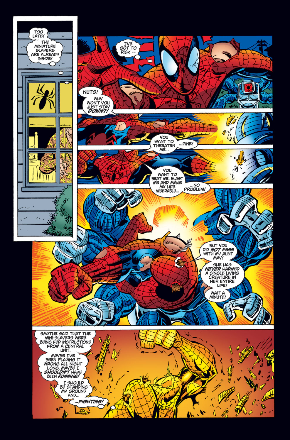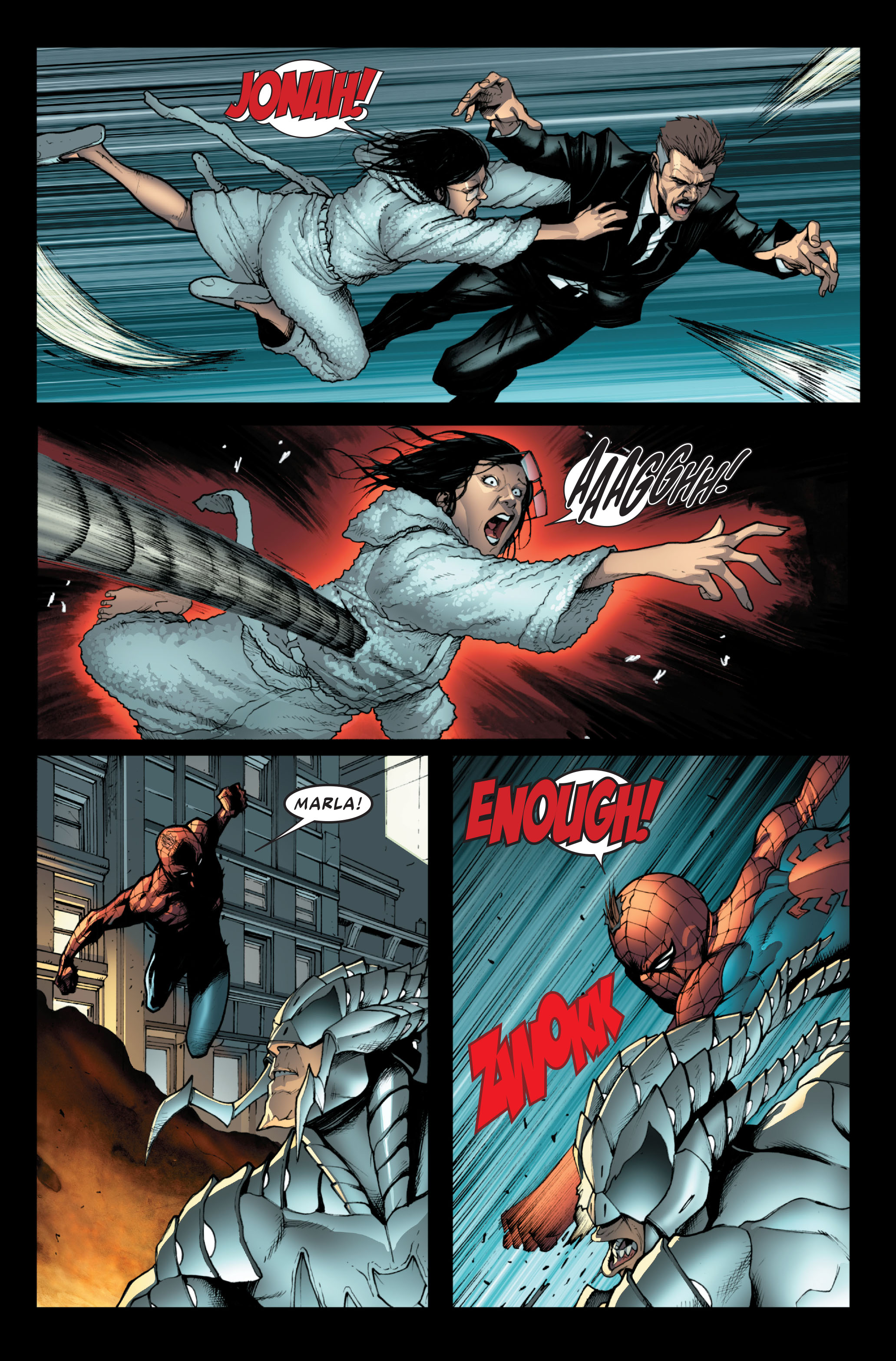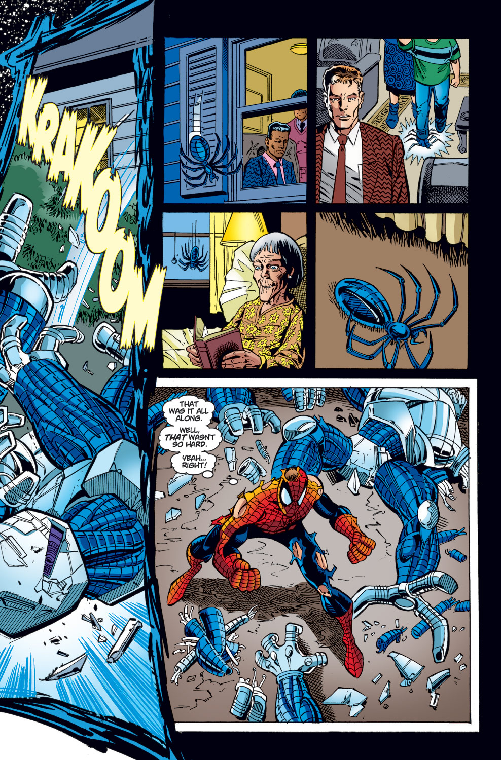 Determined Spider-Man also has numerous impressive feats against Spider-Slayers, robots (or power armor) with the purpose of killing people with spider-powers like Spider-Man. When Doctor Octopus was in Spider-Man's body and didn't hold back at all he easily punched through a Spider-Slayer. Spider-Man has defeated an early Spider-Slayer just through determination and later despite being weakened from battle one-shot a Spider-Slayer. When a Spider-Slayer threatened Aunt May he brutally beat it down breaking it to pieces and when Mary Jane was in danger he also was able to physically destroy one.
