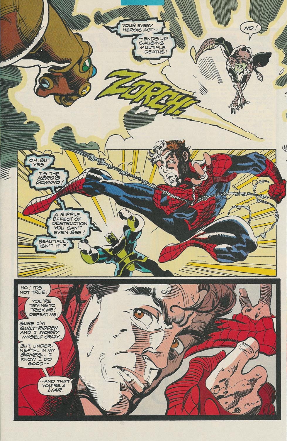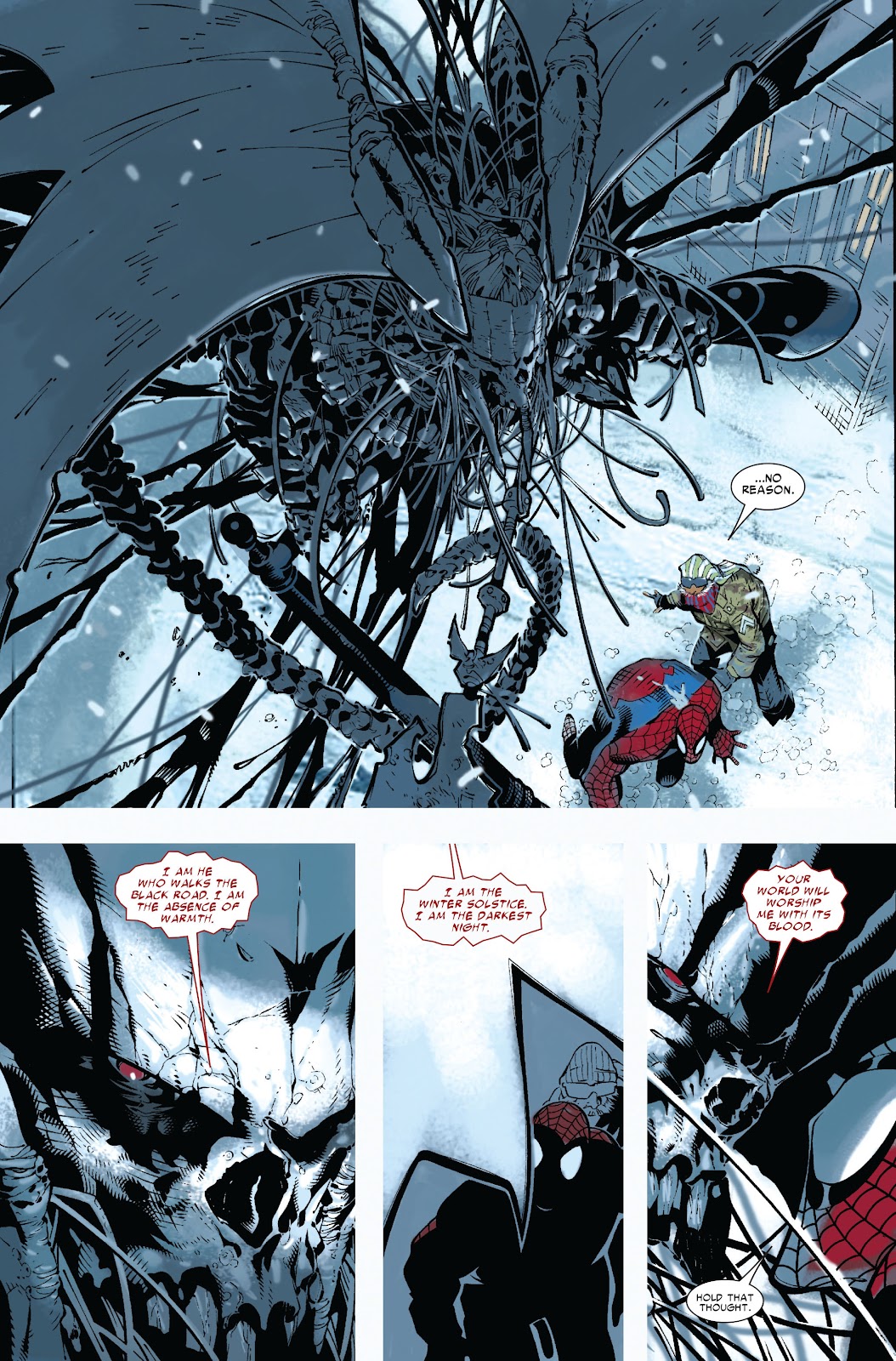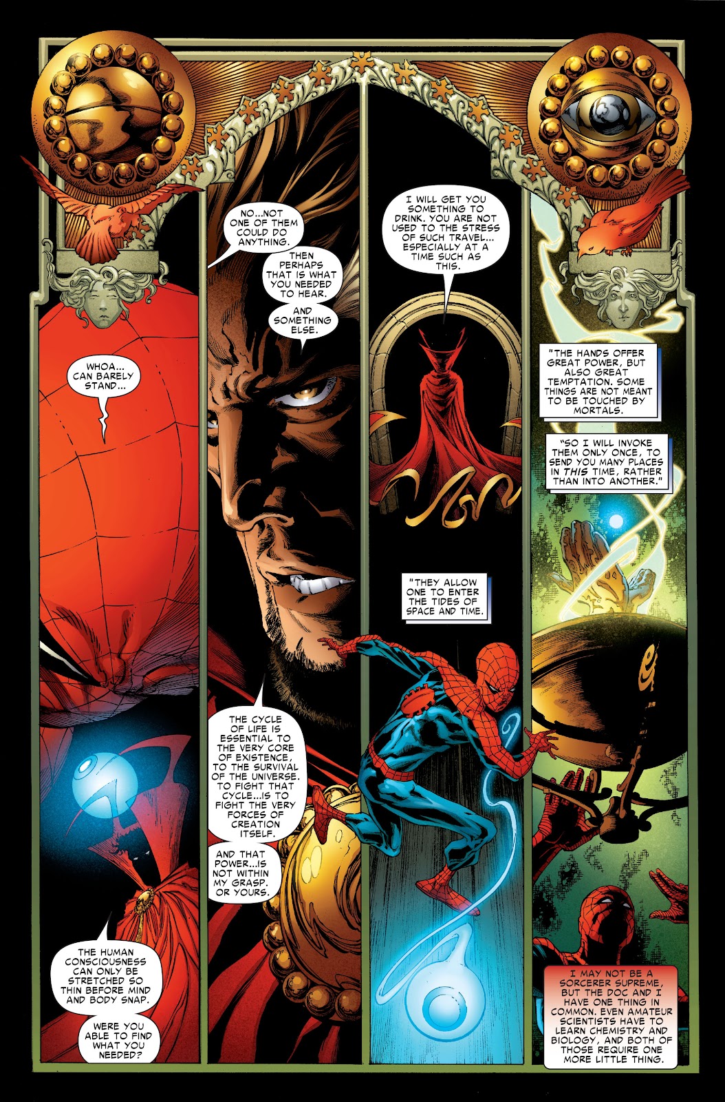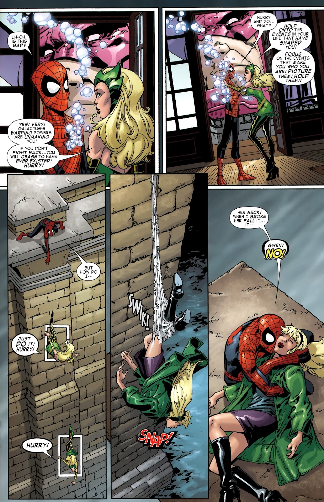 However Spider-Man's will feats don't stop there. What would you say if I told you that Spider-Man's will is actually one of the strongest forces in the Marvel Universe? During One More Day Spider-Man has his conciousness stretched to "everywhere and nowhere" and maybe that's hyperbole, but Spider-Man actually has 3 really insane cosmic willpower feats. In Spider-Man (1990) Issue 17: "No One Gets Outta Here Alive" Spider-Man is killed as is a little girl he was trying to protect. Spider-Man is taken to a place beyond death where there is neither will nor desire. Regardless his soul fights Thanos, not Thanos' soul but the actual Thanos, to try and reclaim the little girl's soul, actually seeming to cause an effect to Thanos' body, withstanding a blow from him and dodging an attack from him. While Spider-Man doesn't beat Thanos, Death herself is so impressed by Spider-Man's efforts that she restores both him and the girl.