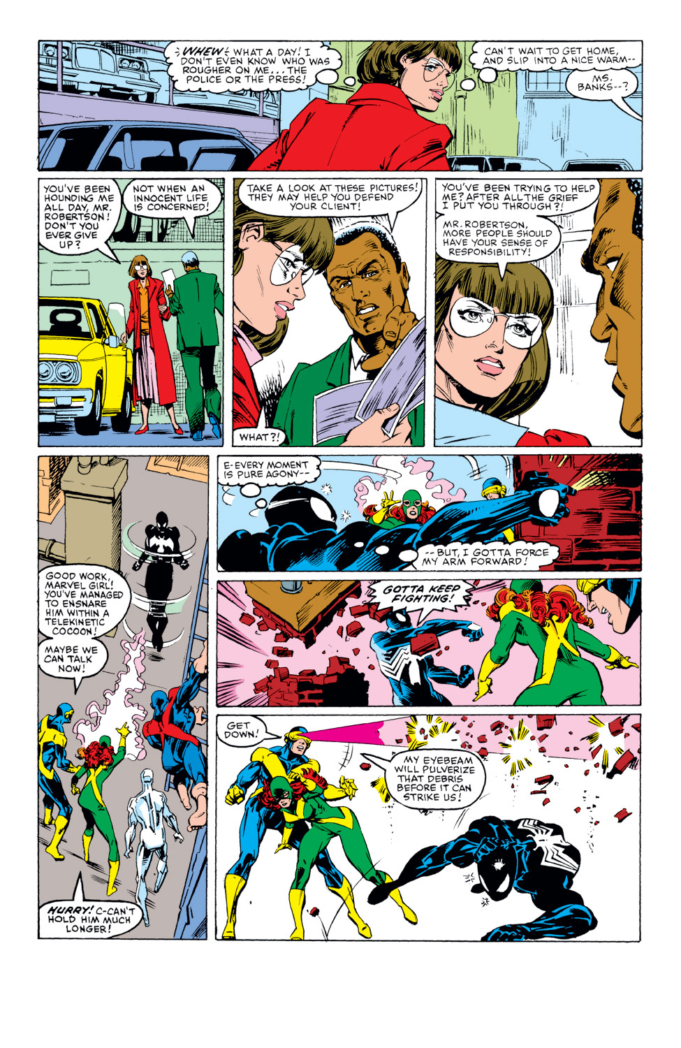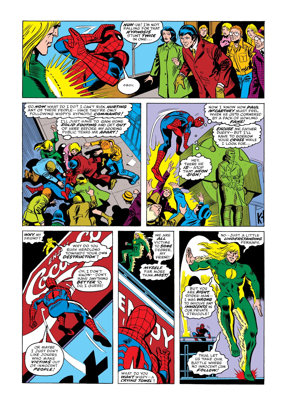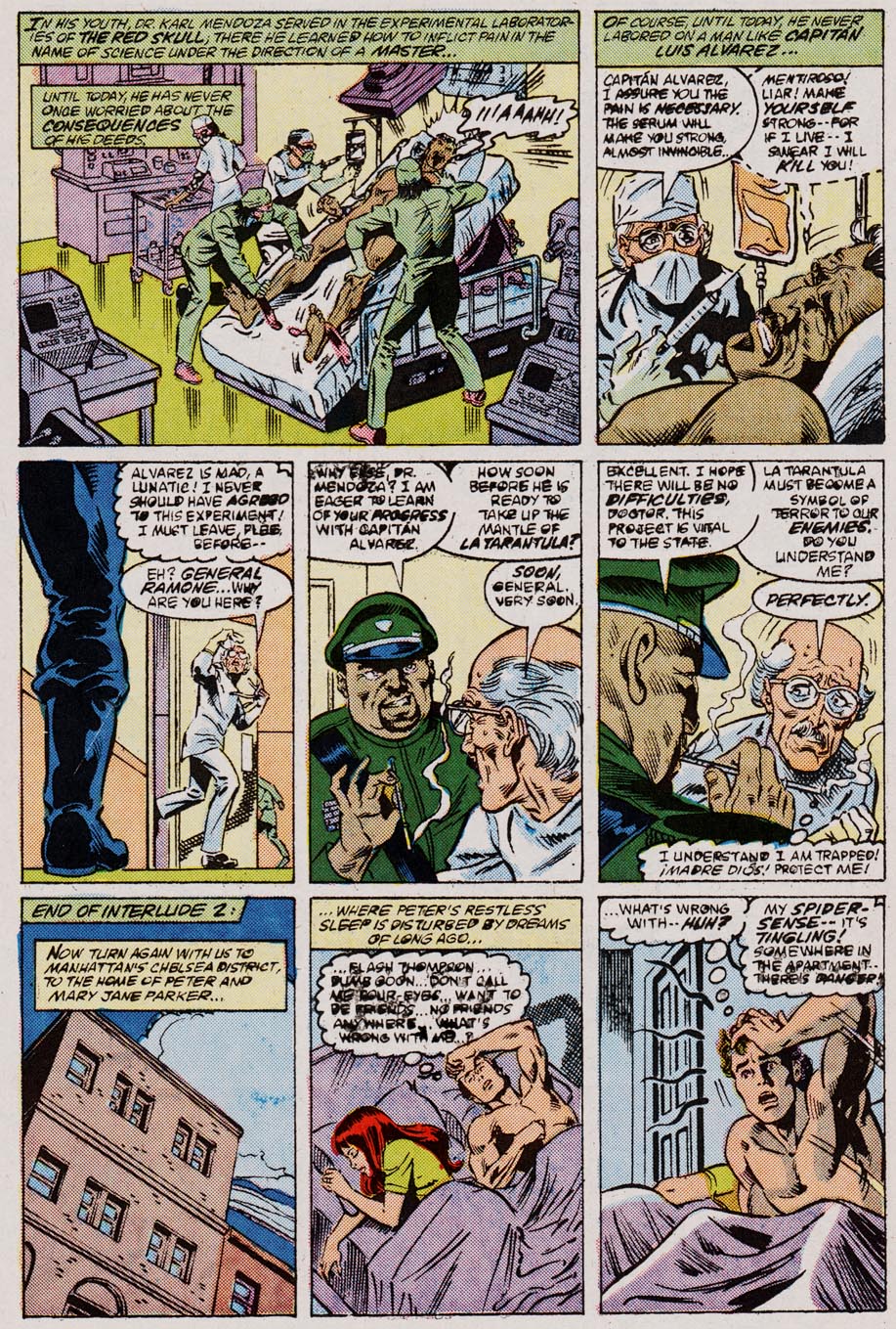 Spider-Man's willpower I have already shown can let him consistently and often push through his own physical limits in strength and he can do the same in terms of stamina and pain. Powerless he fought through the pain of a bullet wound and was able to fight through a pain far greater then removing contact lenses with a power drill or swan diving naked into a pool of needles. He's pushed through Marvel Girl's telekinetic grip which was implied to be will based rather then strength based and was able to fight through a hypnosis that convinced him that his neck was broken and he was paralyzed. Spider-Man was able to fight a machine attacking his will itself. He can do this because his will is even normally stated to be as strong as his body and will fight possession. I actually think the person was unable to tell Spider-Man's will because it's much stronger then his body. Spider-Man has been hit by a vast array of different mind based attacks of different potencies and types however probably most notable for his mind hax resistance is the time he and the rest of the Avengers and Annihilators were at the epicenter of a mental shockwave that gave Magus control of 30% of the US population and were unaffected. Given the population of the United States, this would qualify for country level brainwashing which did nothing to them. He does have more feats of resisting mind hax, but that one is clearly the highest end. However also of note is he couldn't be brainwashed until he was weakened and poisoned and he was able to resist the psychic attack of Mindworm which is implied to also be an astral attack suggesting he has some soul resistance. He was also able to fight against Mosaic trying to posess him and alter his memories inside his mind with multiple mental antibodies that mimicked his abilities. He fought through the emotional manipulation of Helminth and Psycho-Man on seperate ocassions as well as the hypnosis of the Hypno-Hustler who hypnotized a nightclub of people. Also while it's never stated to be a feat, he was unaffected psychologically by Reed sonic gun blasting the symbiote off of his person when a single telepathic yell of the symbiote in distress caused psychological damage all the way out to Chicago, a city over 1,000 km from New York! The psychological damage was strong enough that some were implied to have committed suicide over it, yet Spider-Man at point blank of the symbiote in hypothetically the most distressful situation it had ever been in was unaffected. I'm not really sure if this can be counted as a feat though since the original comic doesn't say that the symbiote does any kind of telepathic screech (as the concept had not been invented yet). Though later on in the same story arc he tanks being close to a far more powerful psychic yell that drove all the symbiotes around him to mass suicide.