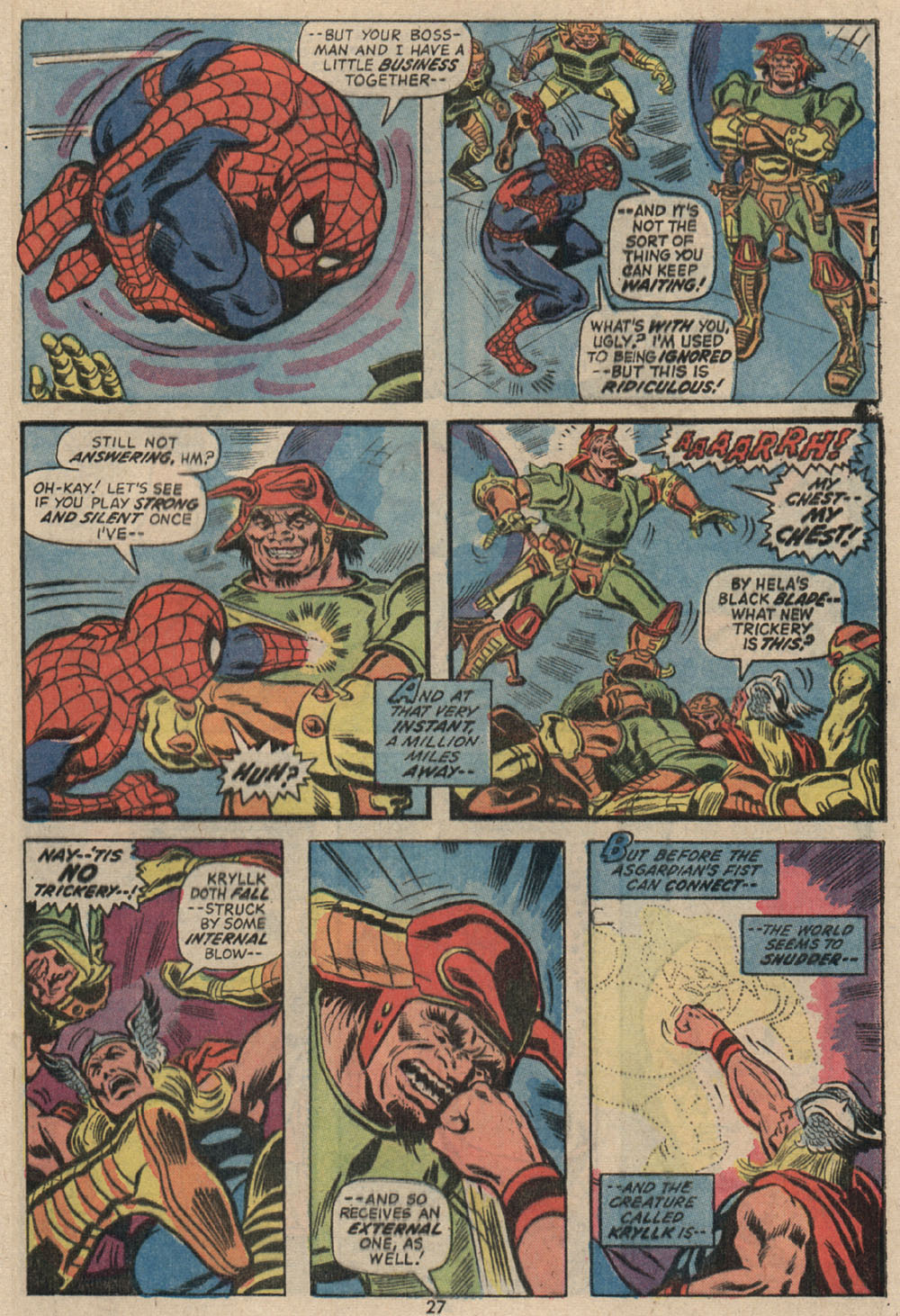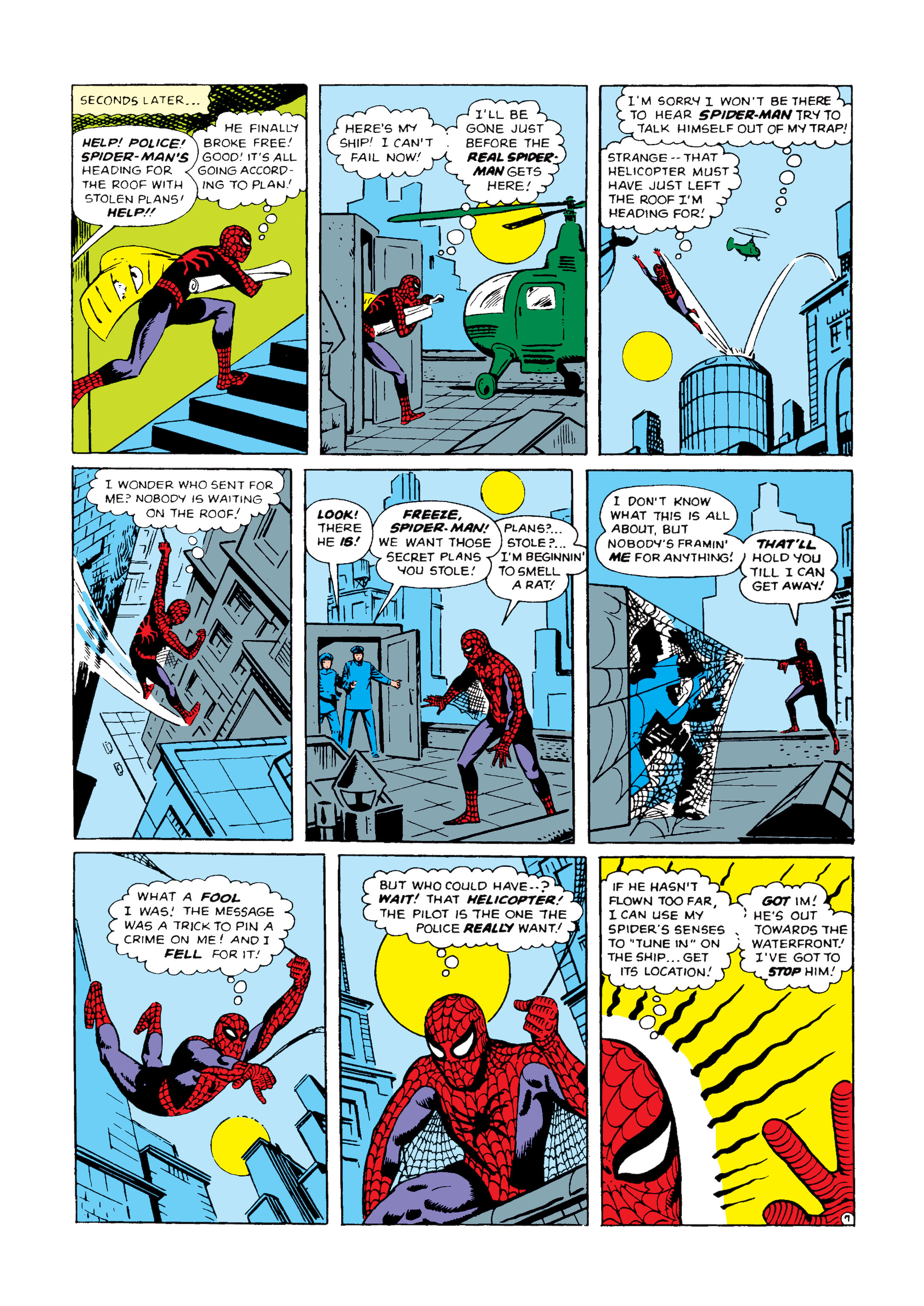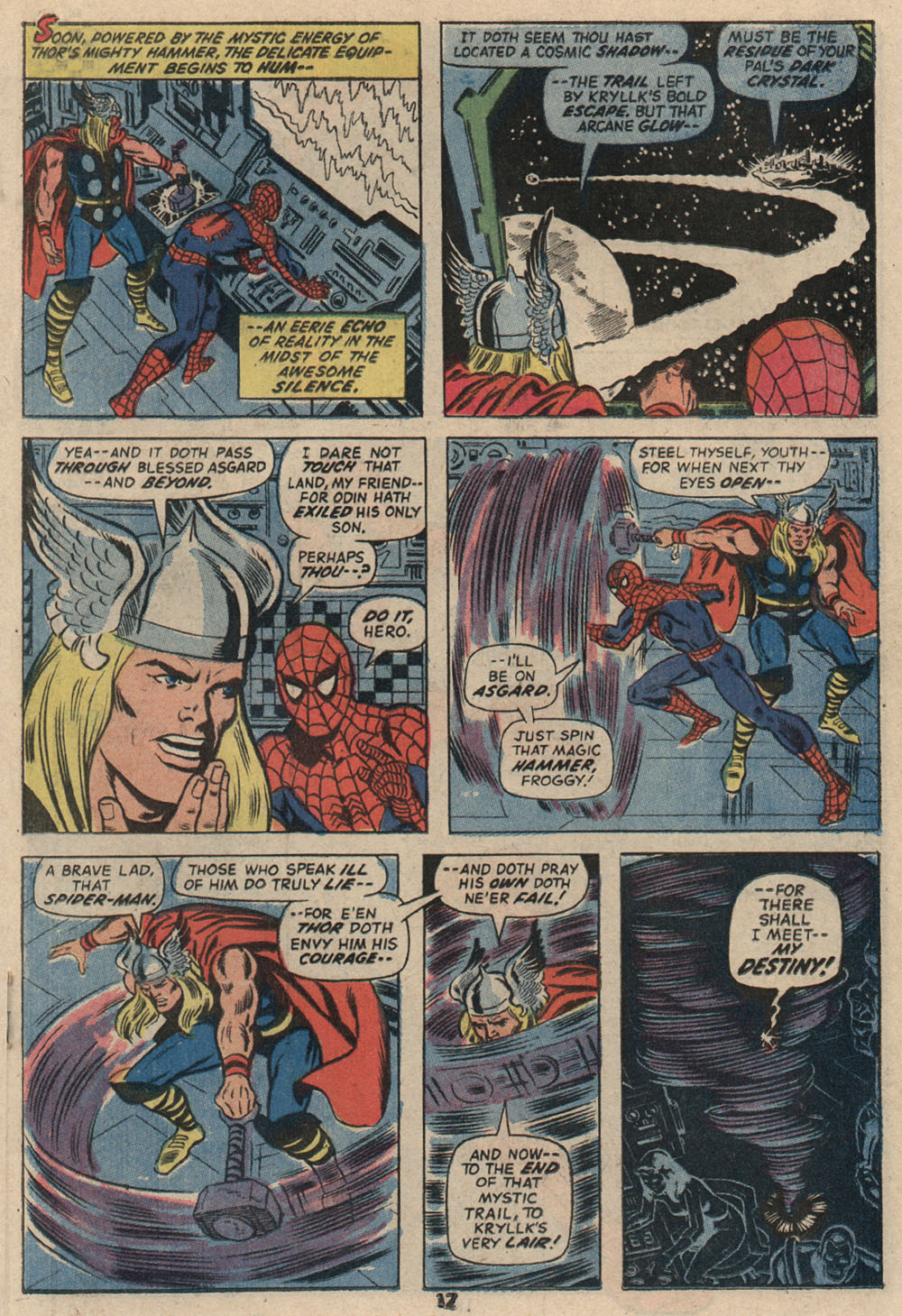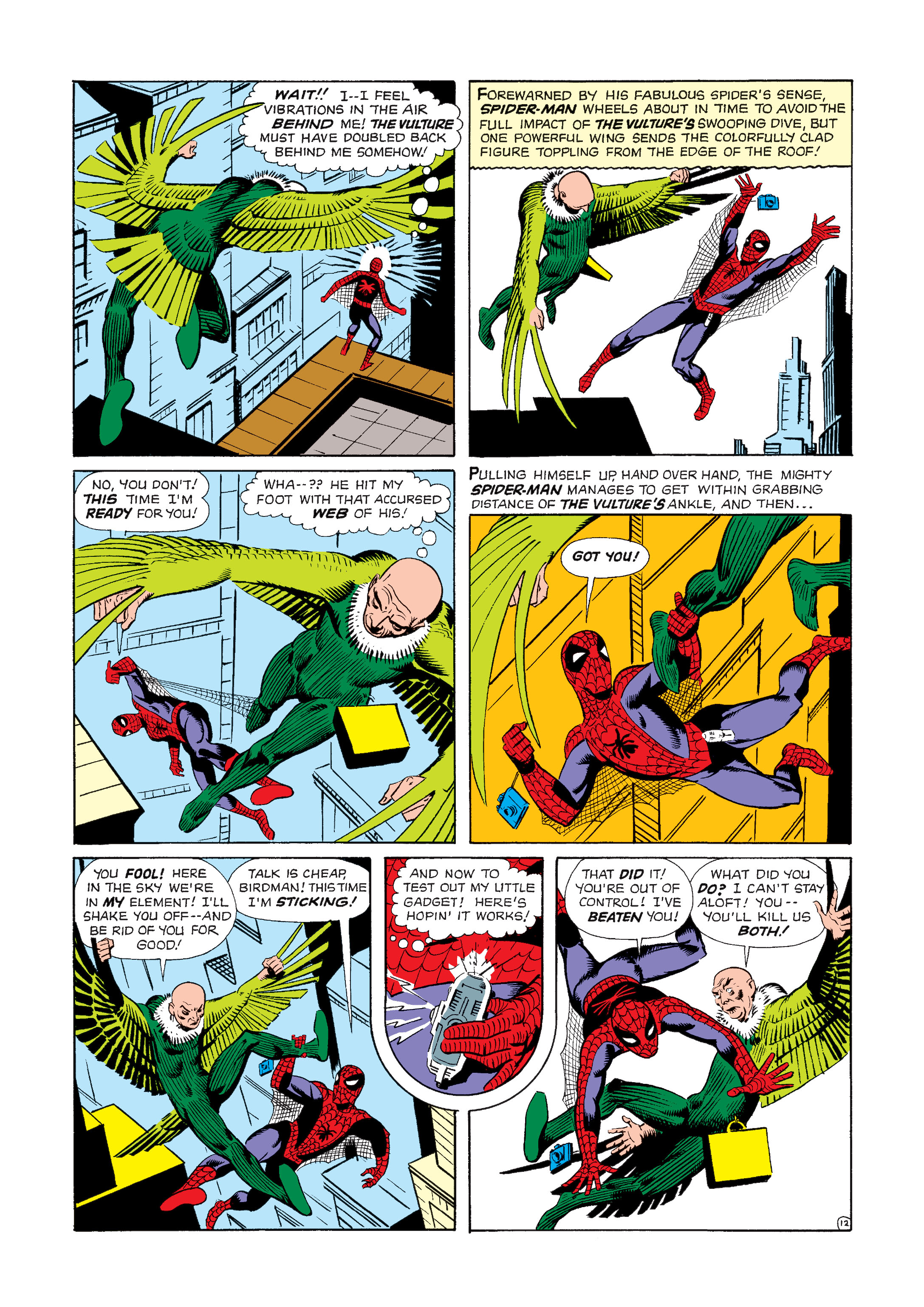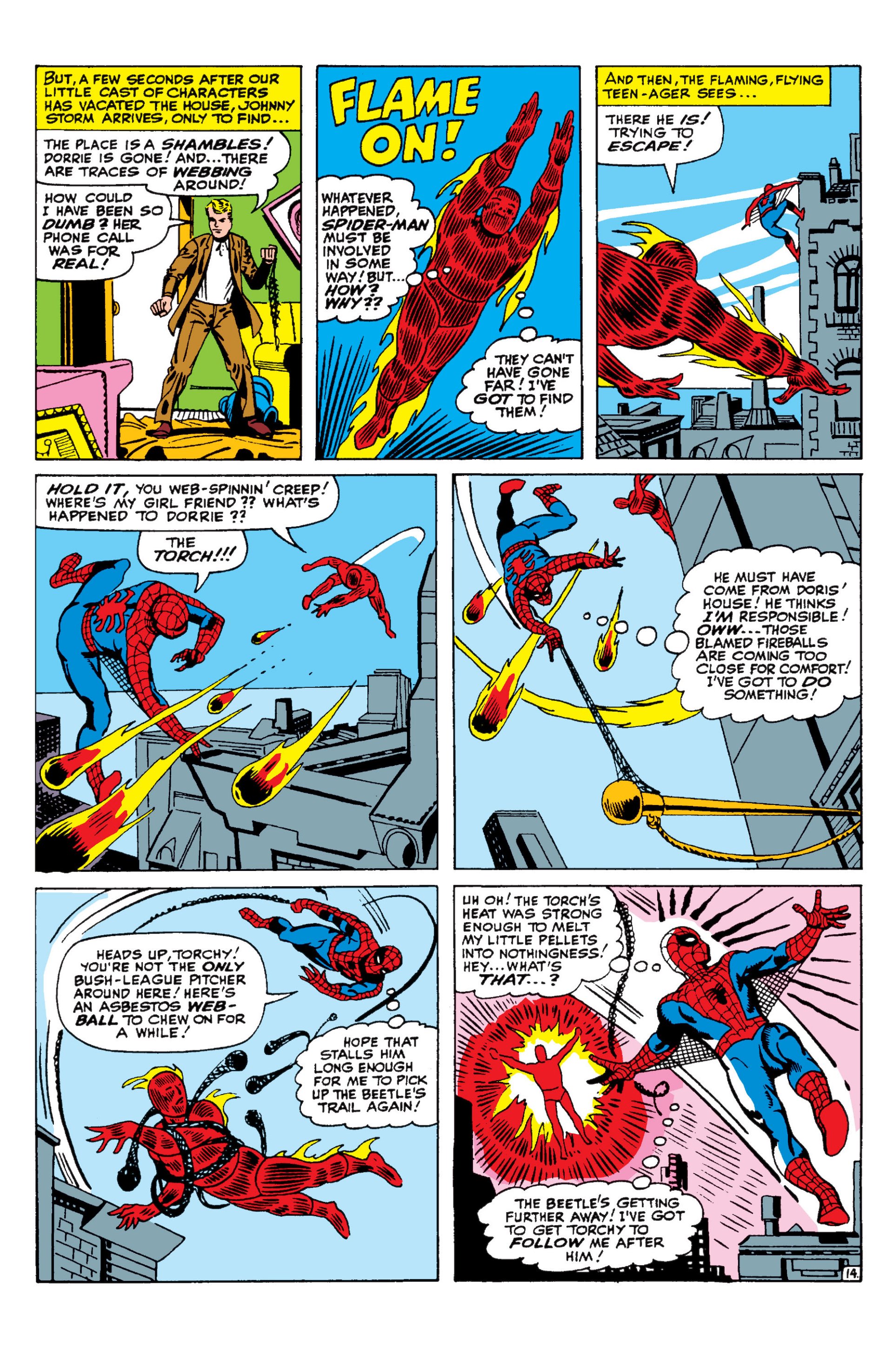 Spider-Man also favorably scales in speed to the Fantastic Four. Spider-Man has stated that his speed and reaction time are better then the Fantastic Four and avoided attacks from Super Skrull who has the powers of the Fantastic Four. He's dodged blows from The Thing and Mr. Fantastic but the real comparison is with his long time friendly rival The Human Torch. Early on Spider-Man was clearly faster. He's avoided his fire blast normally, dodges numerous fire blasts, dodged his fire spear, kept from being outpaced in a chase, avoids the attacks of the brainwashed Human Torch and dodged fire blasts from numerous Human Torch clones at once, with the Human Torch commenting he's never seen someone move so fast. By this point The Human Torch already had hypersonic+ feats and in the same issue he says he's never seen someone move so fast, he writes this giant fire message in the sky quickly. While it's unclear exactly how they compare in modern times, Spider-Man is clearly not massively slower then the Human Torch, able to wall-crawl at the speed Human Torch flies and able to dodges close range fire blasts from an enraged Human Torch. For comparison the Human Torch has his own microsecond feat reaching speeds of over Mach 9000, over 1% the speed of light. The feat of Spider-Man moving faster then anyone The Human Torch had ever seen happened in December 1963 while the Human Torch's Sub-Relativistic Feat happened in January 1964. I am NOT kidding.