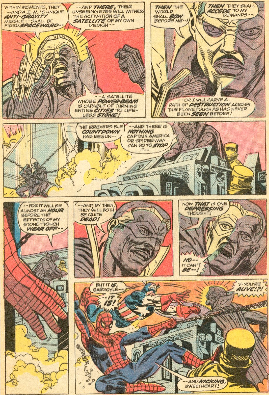 However this is not the end to Spider-Man's strength. Spider-Man has an incredible supernatural will as will be explored in a later section, and this allows him to push past his limits, regularly overpowering enemies that are his superiors normally even when weakened. Spidey's villains know that when he stops joking, they should be afraid. He has lifted a weight he couldn't before by thinking of Mary Jane, not just lifting but completely shattering it, when determined Spidey broke an orb he couldn't prior despite being disoriented and weakened, and broke bindings that were surpressing his powers. He lifted and moved a large portion of a building underwater, held up the Daily Bugle and punched with more force then a mortar shell despite being weakened. In The Avengers Issue 315, Spider-Man thinking of Mary Jane even allowed him to break a coil that no force on Earth could break. This would include the like of nuclear bombs and likely natural disasters well into the megaton range. When Iron Fist was asked about people he couldn't beat, his first thought was Spider-Man, and this level of power was presumably what he thinking of given his megaton level feats.