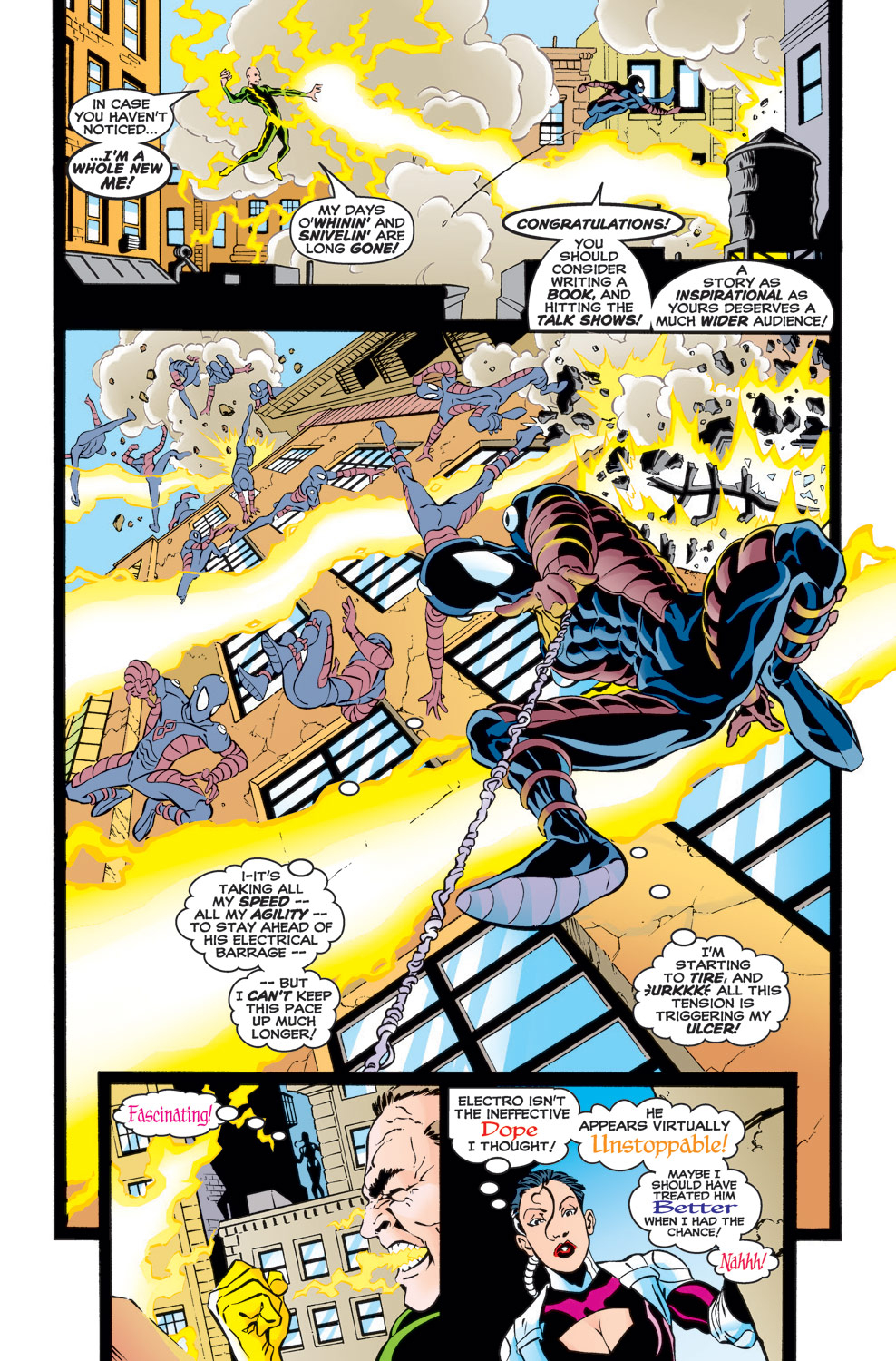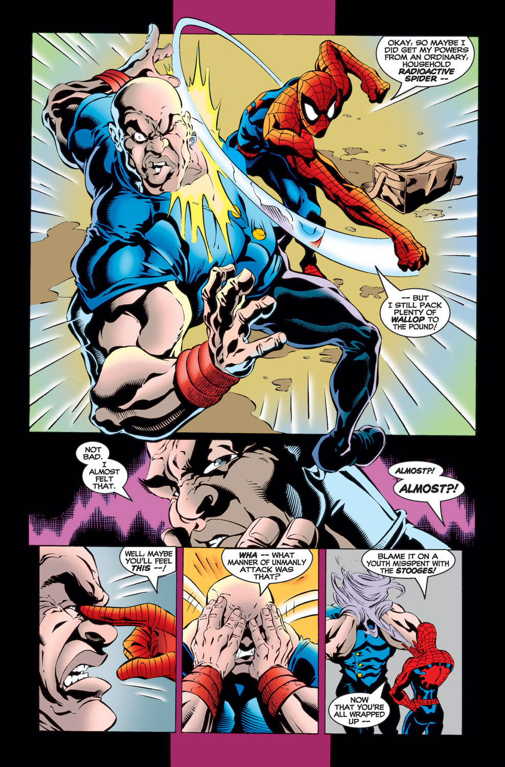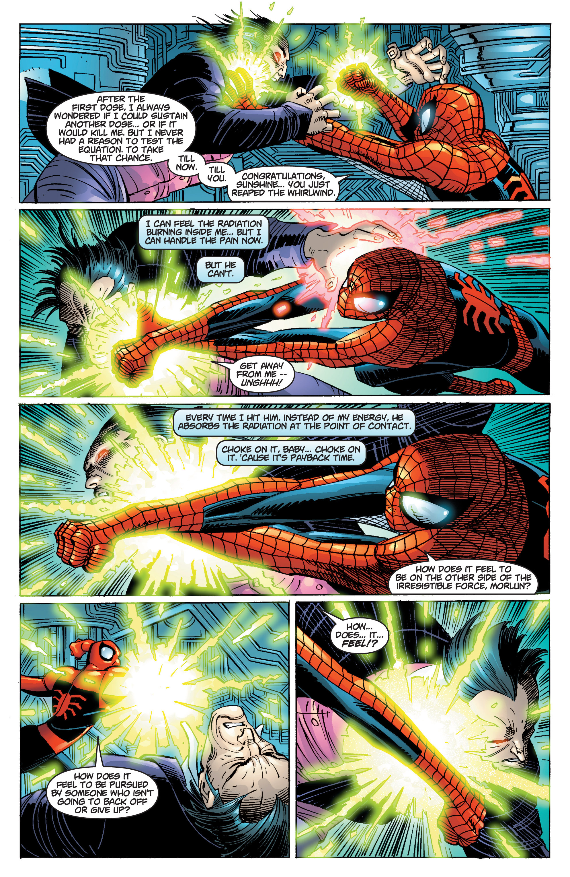 Spider-Man has a superhuman level of stamina. Originally this seemed to be connected to his super strength somehow though later on, and this seems more logical to me, it seems linked to his superhuman willpower, his ability to fight through fatigue. Spider-Man even early on stated his spider-strength meant he could stay active all day, he persisted on 3 days with only 3 hours of sleep without much difficulty and was later active for three days without any sleep without any fatigue. When he exerts himself he can go even further. He fought Morlun for 12 hours straight which is also an incredible feat of endurance, he fought 99 villains in procession but his most impressive feat of stamina and one of his most impressive feats in general comes from The Amazing Spider-Man Issue 500.