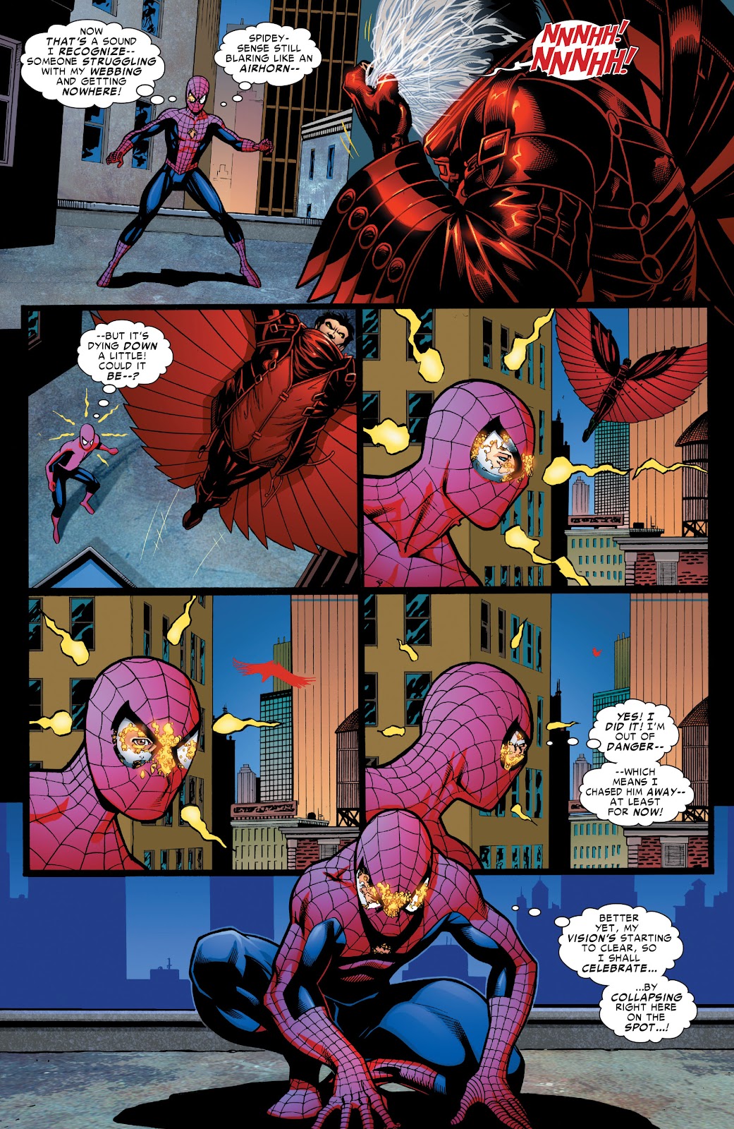 Spider-Man's physiology also gives him a healing factor. Obviously he's no Wolverine or Deadpool, but he has some pretty decent regenerative feats. He recovered from the worst flu a doctor had ever seen in minutes, recovered from Swarm's bee stings the fastest, recovers bruises in implied short periods of time and regenerates broken bones within a single day. I was also going to bring up the time Spider-Man was blinded and regenerated his sight but then I realized that wouldn't be specific enough because that actually happened twice (clearly he needs to start wearing protective eyegear). The first time it took hours, the second time he got acid burns to the eyes and was blinded yet his vision began to recover in minutes at most and was fully healed a bit later.