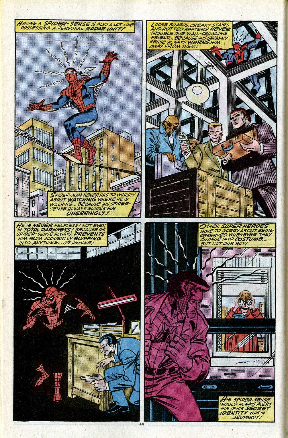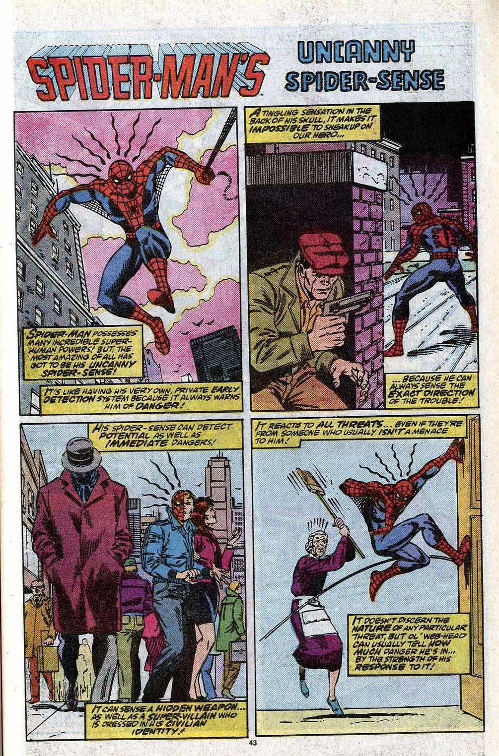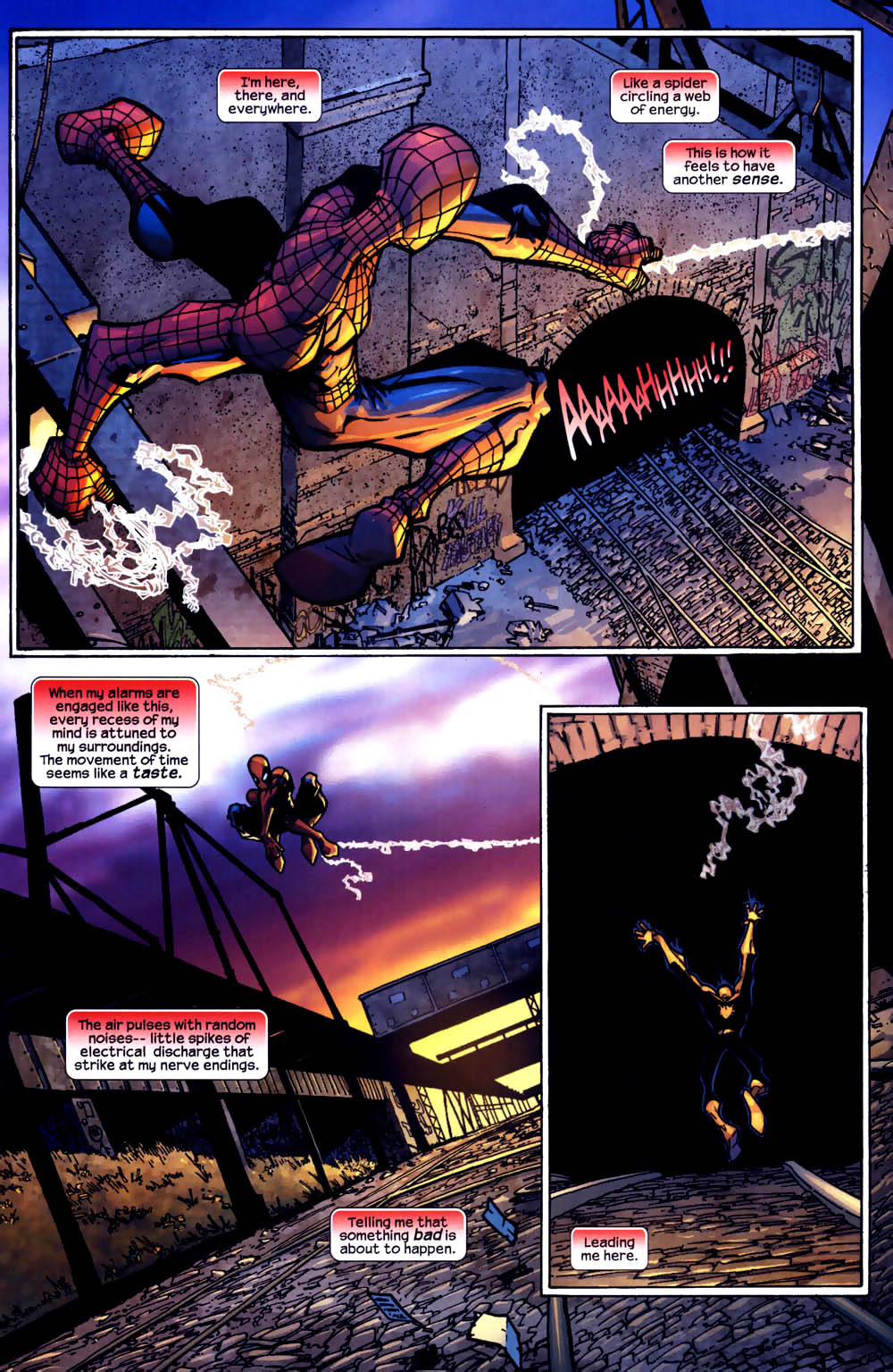 The spider-sense will also give him information about objects and the general area around him. As mentioned above, the spider-sense gives Spider-Man a greater sense of spacetime around him. While blind, Spider-Man could sense the area around him was a flat expanse, was able to sense the pit under a statue, led him unerringly through a labyrinth, grants him 360 degree awareness, and sensed spacetime disturbances. The spider-sense can be used to trace objects, acting as a form of rudimentary clairvoyance. He has used it to track a helicopter, a criminal, and the villain The Beetle. He can detect and follow sensory impulses, the tiny charges given off by the brain to track people down including Doctor Doom! He can use his spider-sense to discern information about objects and often does so with technology. He's used it to help fly a plane, sense the power source for a bomb and defuse a tactical nuke. It even helped him work technology he had never seen before. The spider-sense has told Spider-Man that a wall was not real, warned him that a light fixture would fall and warned Spider-Man that smashing some glass would trigger an alarm when he was being too impulsive to notice the alarm right immediatly on the other side. It even warned Spider-Man about the contents of a drink and....somehow allowed him to read a message that had melted to illegibility.