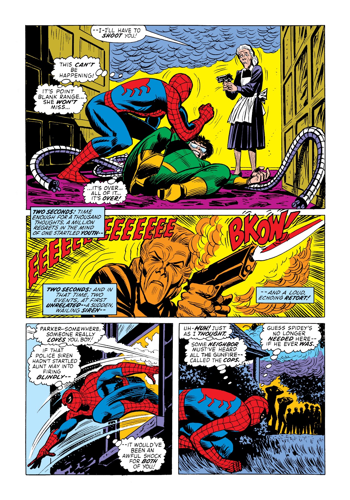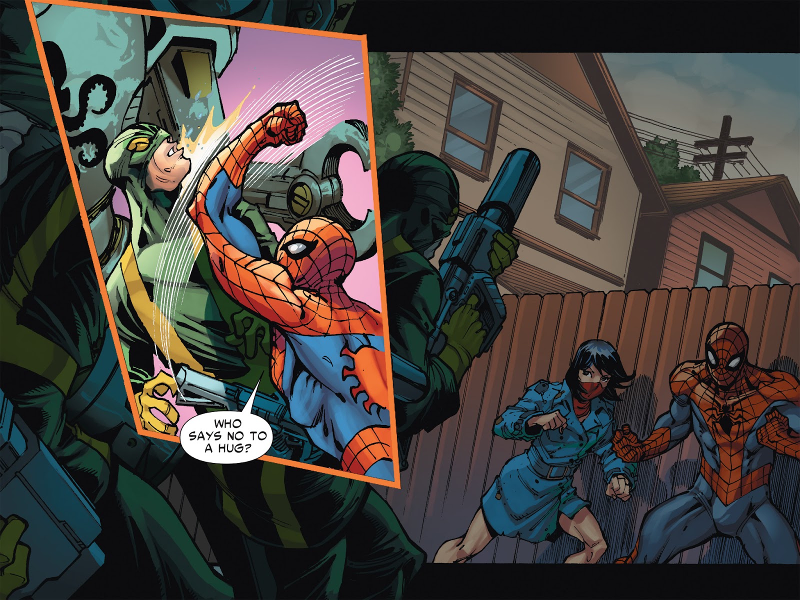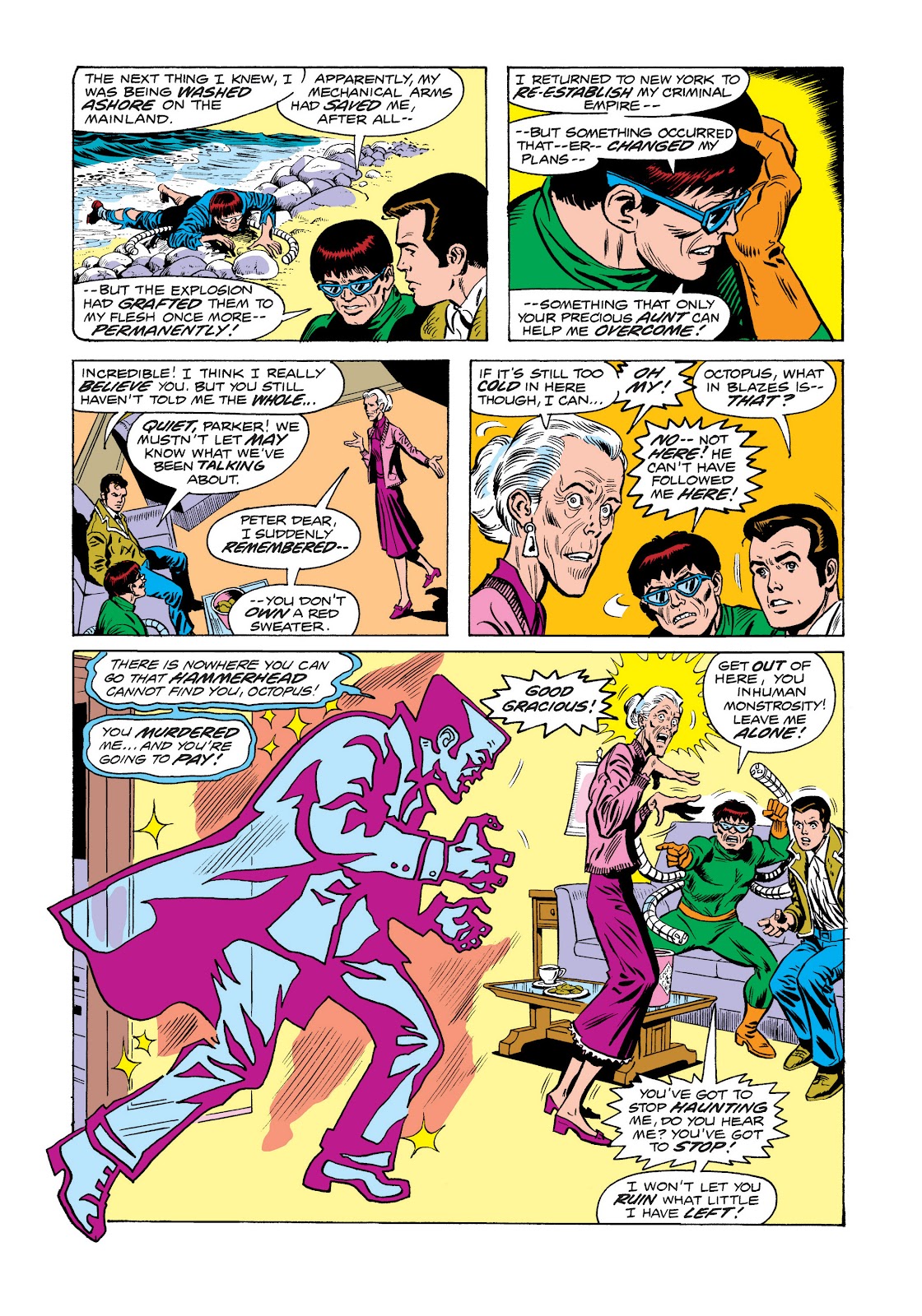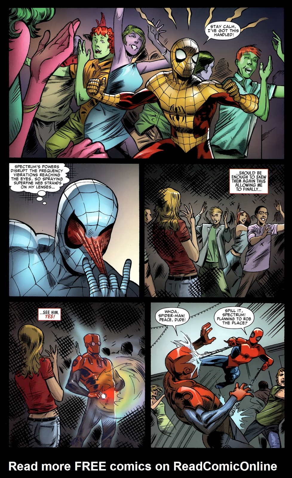 Speaking of fighting inside his minds and his soul's strength, both of those powers came back to note in the Superior Spider-Man series where Doctor Octopus had swapped both his and Spider-Man's minds and killed Spider-Man in his body so he could assume Spider-Man's identity. However Spider-Man's soul lingered there and kept Doctor Octopus from killing people. While it was difficult, he was able to even forcibly some of his body parts despite Otto being in control. Spider-Man's psyche regenerated within his mind and when Doctor Octopus's careless actions threatened an innocent child Spider-Man's soul forcibly took control saving him and challening Doctor Octopus to a fight inside his mind which Otto accepted. Otto tried to wipe away Spider-Man's mental body and battlefield (all his memories) but Spider-Man's will simply pushed back against it restoring them. Spider-Man and Doctor Octopus would battle in Spider-Man's mind, Spider-Man's mental body showing the ability to reality-warp his mental battleground before summoning mental projections of all his friends and loved ones, the source of his strength who collectively overwhelmed Doctor Octopus' mental body.