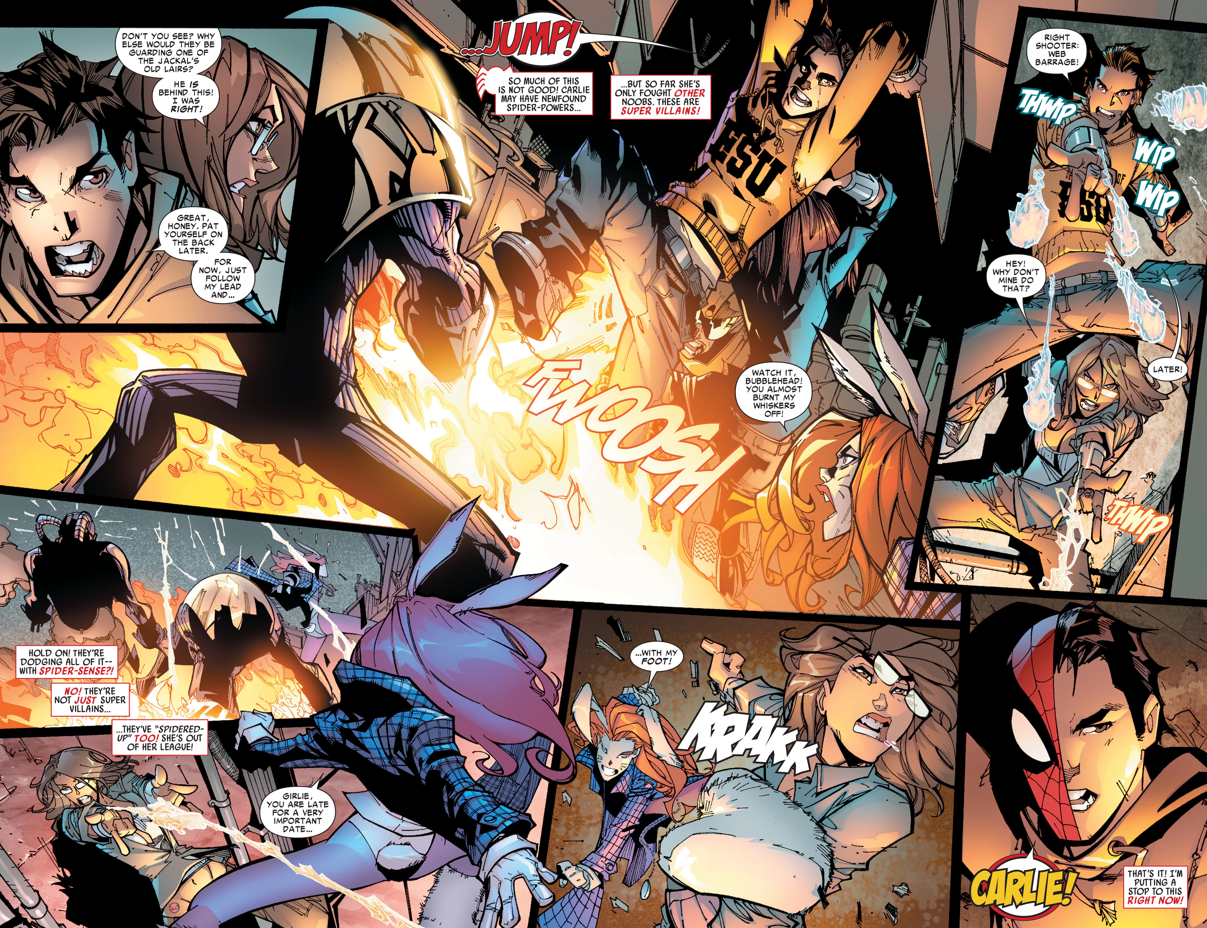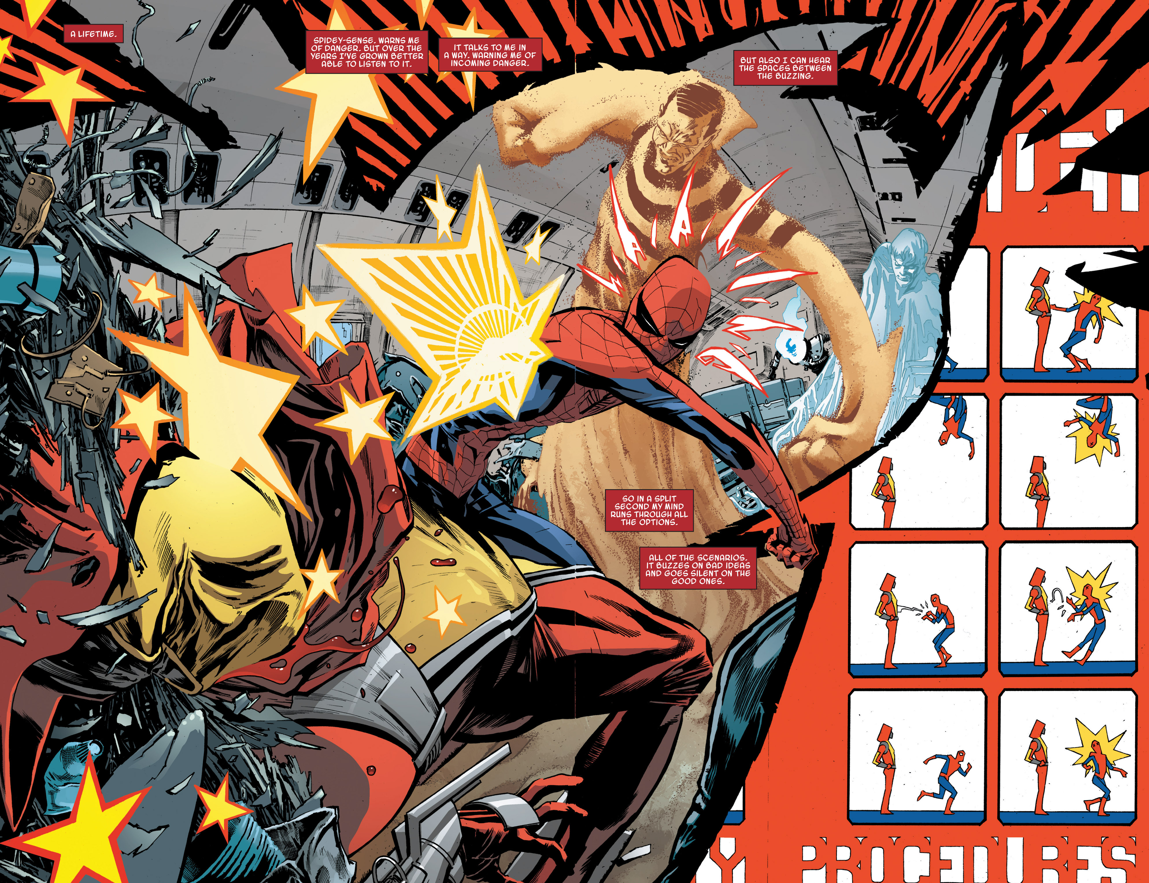 Peter Parker has one of the wildest intelligence versions of power creep I've seen, going from being a good student to one of the smartest men in the marvel universe's pantheon of super-geniuses as befitting he who is possibly a manifestation of the trickster spider-god Anansi. He's got an IQ above 250 and is a certified genius who uses it in combat. He has described his insults and wit as his two finest qualities and considers his intelligence to be as strong as all of his spider-powers. As a possible manifestation of the spider-god Anansi, Spider-Man is very able to use his intelligence to trick people in combat, even completely plotting out the actions of Speed Demon in a fight with him to circumvent Speed Demon's speed. Looking into Spider-Man's brain caused Mosaic to become overwhelmed by the sheer level and depth of information. Spider-Man's brain works fast enough to rewire every machine in New York in 20 minutes and also mentally control hundreds of thousands of spider-bots into curing 1.6 million people in under 20 minutes. Also I don't know if this is an intelligence feat but when Doctor Strange and Spider-Man were trapped, Doctor Strange used his magic to swap he and Spider-Man's powers and Spider-Man learned how to use magic insanely quickly. I don't know if this is a side-effect of Doctor Strange swapping their abilities, though it doesn't seem to be as Spider-Man does mention not knowing how to use it. If it's not a side-effect of the power swap Spider-Man learned to use magic in seconds when in Marvel magic usually takes years of study to learn to use.