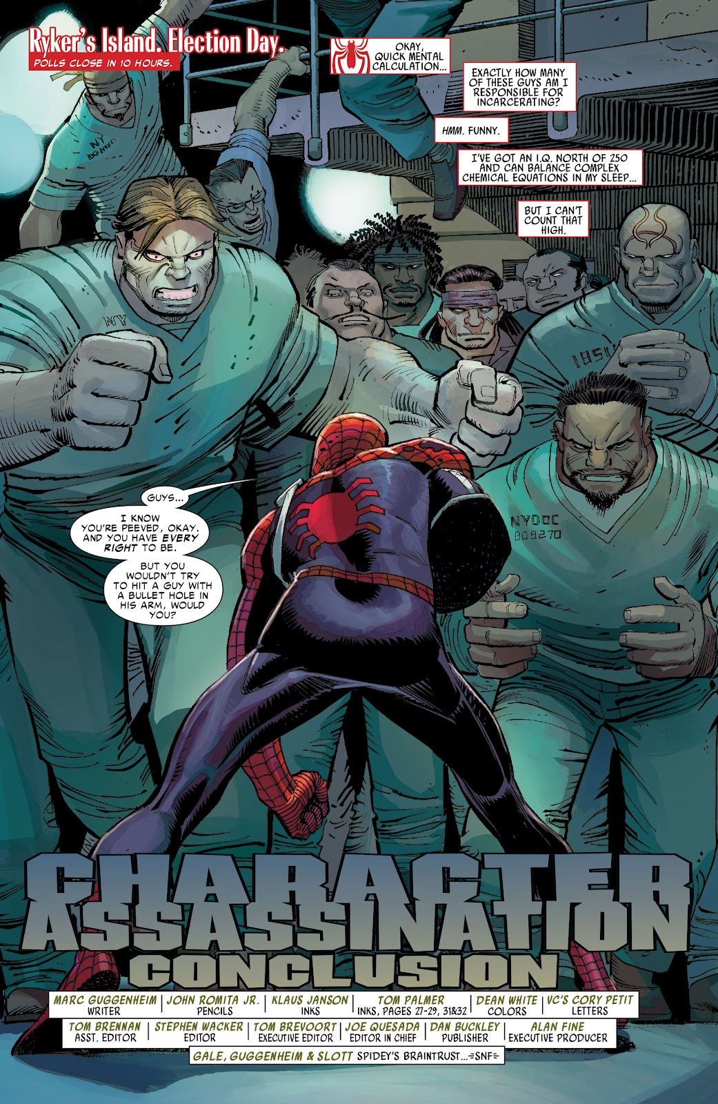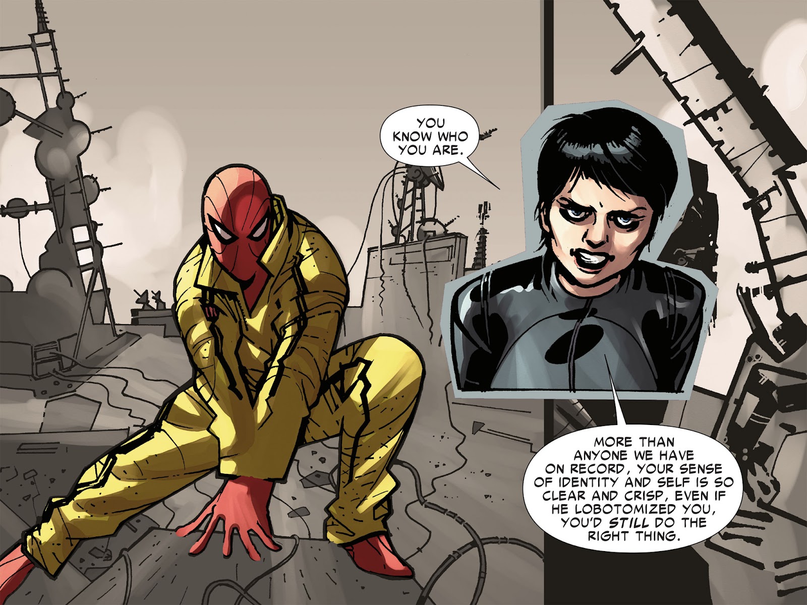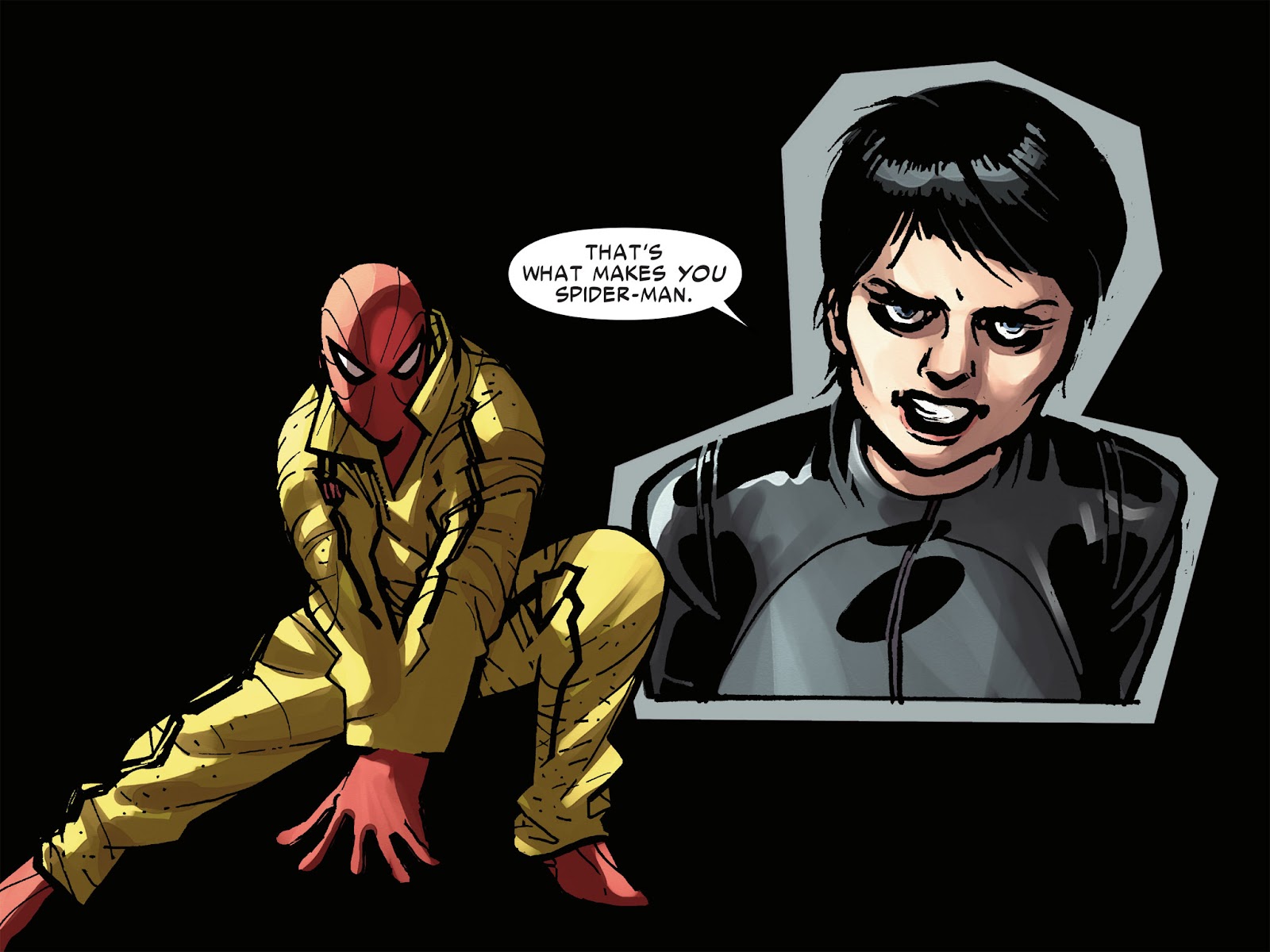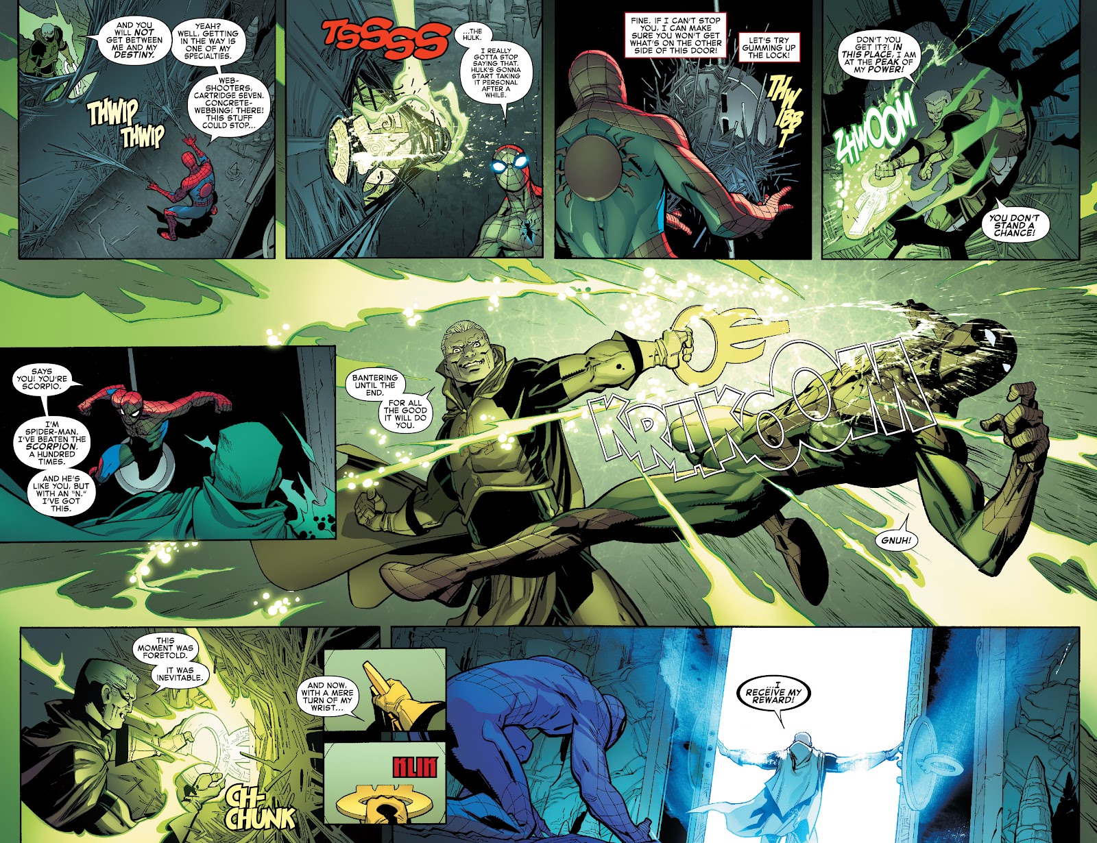 Spider-Man is famous for his incredible willpower and I think it's his most impressive quality. When Doctor Octopus erased most of Spider-Man's being, he was distilled down to his core, that being the man that never gives up. The real Spider-Man never stops struggling and if being Spider-Man means anything it means not giving up. Even if he was lobotmized, Spider-Man would do the right thing, that's what makes him Spider-Man. When Doctor Octopus took over Spider-Man's life, the weight of Spider-Man's responsibility began to mentally crush him and when Spider-Man showed Tinkerer his life it broke him out of his murderous desire to realize the unimaginable pain Spider-Man has been through. Spider-Man's willpower is linked to his immense courage, praised by Thor, Doctor Strange, Adam Warlock and Black Panther. His courage was strong enough that he could beat up D'spayre despite his fear aura and when he thought Mister Fear had killed Hawkeye he was able to overcome the fear potion that had prior made Hawkeye faint at just the sight of Spider-Man.