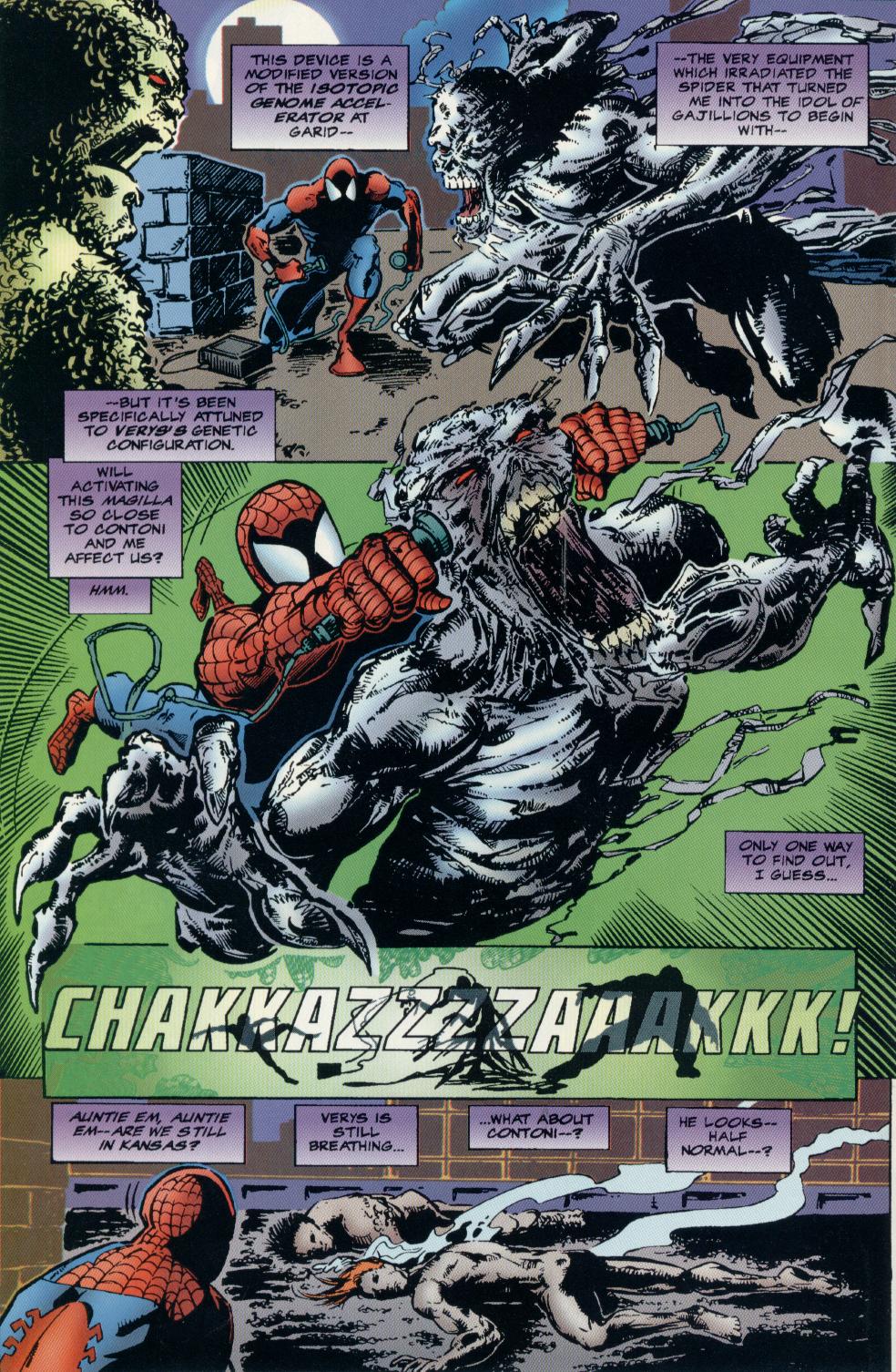 But Peter's body chemistry was different... for the race of humanity contained dormant metahuman genes from the early experimentation of the race of hyper-advanced beings known as Celestials. This bite was actually a manipulation of the Spider-God Anansi specifically to activate this gene in Peter. All this was done by the Great Weaver so as to make sure that one such being, a being with spider-powers and noble intent, the spider-totem, would exist in every universe, influencing the multiverse to good.The radioactive spider-bite activated the metahuman gene in Peter's body, gifting him with incredible spider abilities!
