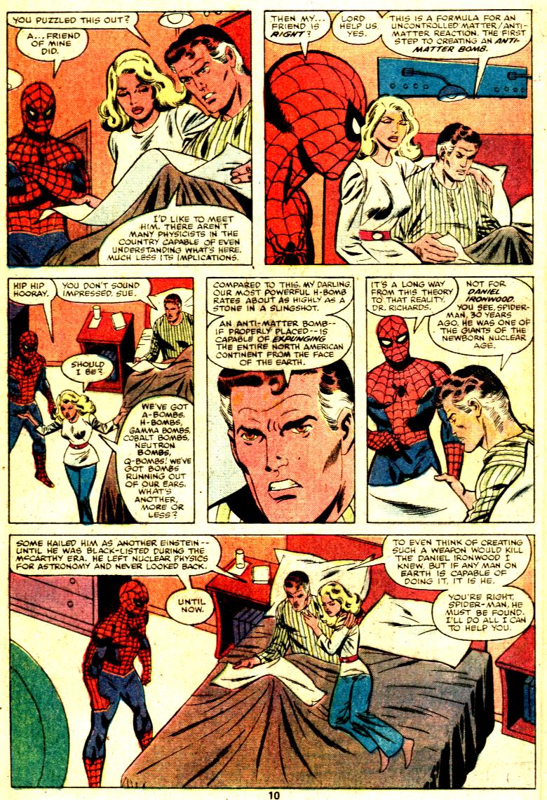 Spider-Man has a LOT of technological based intelligence feats. I try and quantify these using the Kardeshev Scale of Civilizations, saying that the feat is creating or otherwise equivalent to creating technology we would expect of a civilizaton of that level. Some basic equivalents for it include type 0.1 is rudimentary tools and fire usage, type 0.25 is approximately the Roman Empire. type 0.5 is the Industrial Revolution, Type 0.73 is our current area approximately, Type 0.75 is near-future technology, things that are currently rudimentary today, Type 1 is for planetary civilizations with things that we think are feasible but don't have at the moment, Type 2 is for star system civilizatons with technology that require massive amounts of energy or maybe impossible or require science we don't know yet (like FTL Travel), Type 3 is for galactic civilizations whose technology using cosmic levels of energy and can distort the laws of nature on some level but still is bound to the physics of the universe, Type 4 is for universe-spanning civilizations whose science starts to become indistingushable from magic and Type 5 is for multiverse-spanning civilizations whose science makes them indistinguishable from deities. This is a over-generalization but I've tried to categorize characters feats by these levels of intelligence and will try to provide a few feats for each level that Spider-Man has gotten too. This is not every feat, particularly for the lower tiers, same way as I don't give every superhuman strength feat at wall level, however this is every feat I found for the highest intelligence tier.