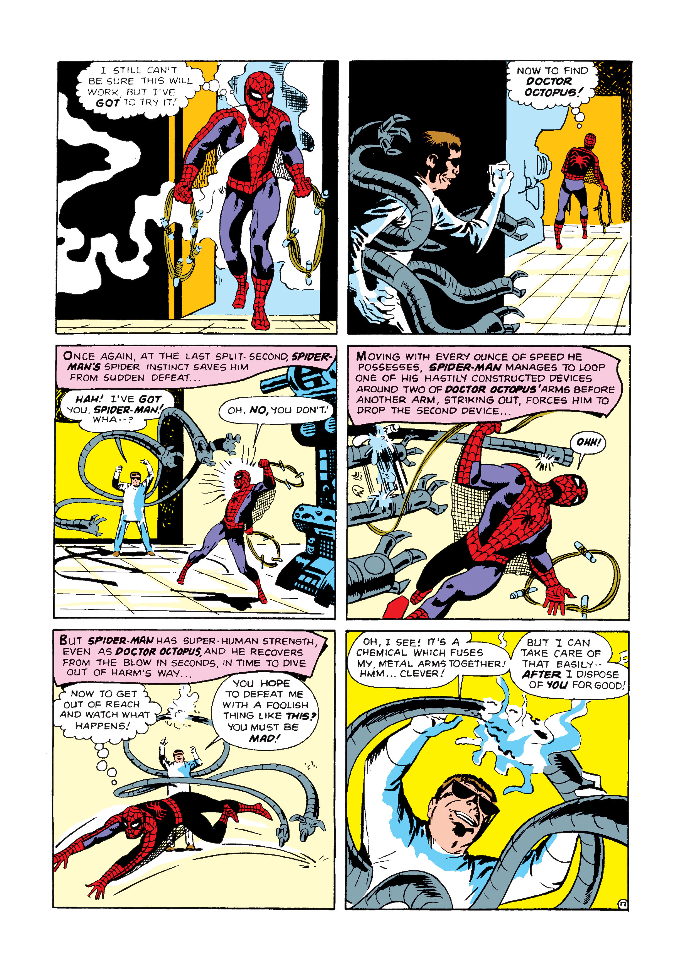 Most people who have vs debated Spidey are probably aware of the famous scene in "If this be my Destiny", one of the top 3 most famous plots in Spidey's history (along with his first appearence and Gwen Stacy's Death) where to save Aunt May, despite being trapped under the weight of a locomotive, Spidey gives everything he's got and manages to lift the weight. What's often missed about this scene is that Spidey was incredibly weak from being active non-stop for days. Before this, Doctor Octopus, who was a bit stronger then Spidey normally and characterized by extreme arrogance, thought there was no way to beat Spider-Man and fled for his life. A later comic implies that in the scene Spidey was not just lifting the weight of a locomotive, but in fact lifting the entire underwater facility they were in. A normal Spider-Man has numerous times harmed early Titania who is said to be able to lift locomotives in the same fight. Speaking of Doctor Octopus however, on another occasion Spider-Man was weakened from sickness and put on a power harness to compensate to fight Otto but when the harness ran out of power, he managed to win via sheer determination.