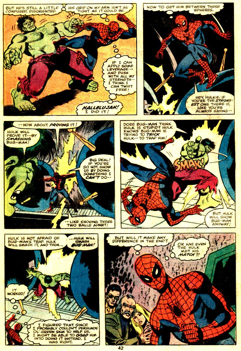 He also has psychological weaknesses. In fact he has many psychological weaknesses. He is characteristically impulsive and immature used to solving things with his fists. His immense willpower can also be his stubbornness, unable to pull himself away from a plan when he's set his mind to it, even if it's the wrong thing to do. Also because of his vast intellect, he's kind of a know it all that never knew how to fit in with peers mostly because he acted like he knew everything. A good example of this is how despite many encounters with Thor and Doctor Strange he didn't believe there was any possibility that his origin might have anything magical to do with it. Spider-Man's also a boy scout who always tries to do the right thing even when, or especially when, it makes his life miserable which has caused him difficulty when trying to do things like fight women who he doesn't want to fight. Though he makes an exception for serial killers. Villains manipulate Peter by doing things like threatening civilians. I think most of Spider-Man's losses have been due to an enemy exploiting his psychological weaknesses; either a villain exploiting his do-gooder nature, a calm patient enemy exploiting his hot-headedness, or both.