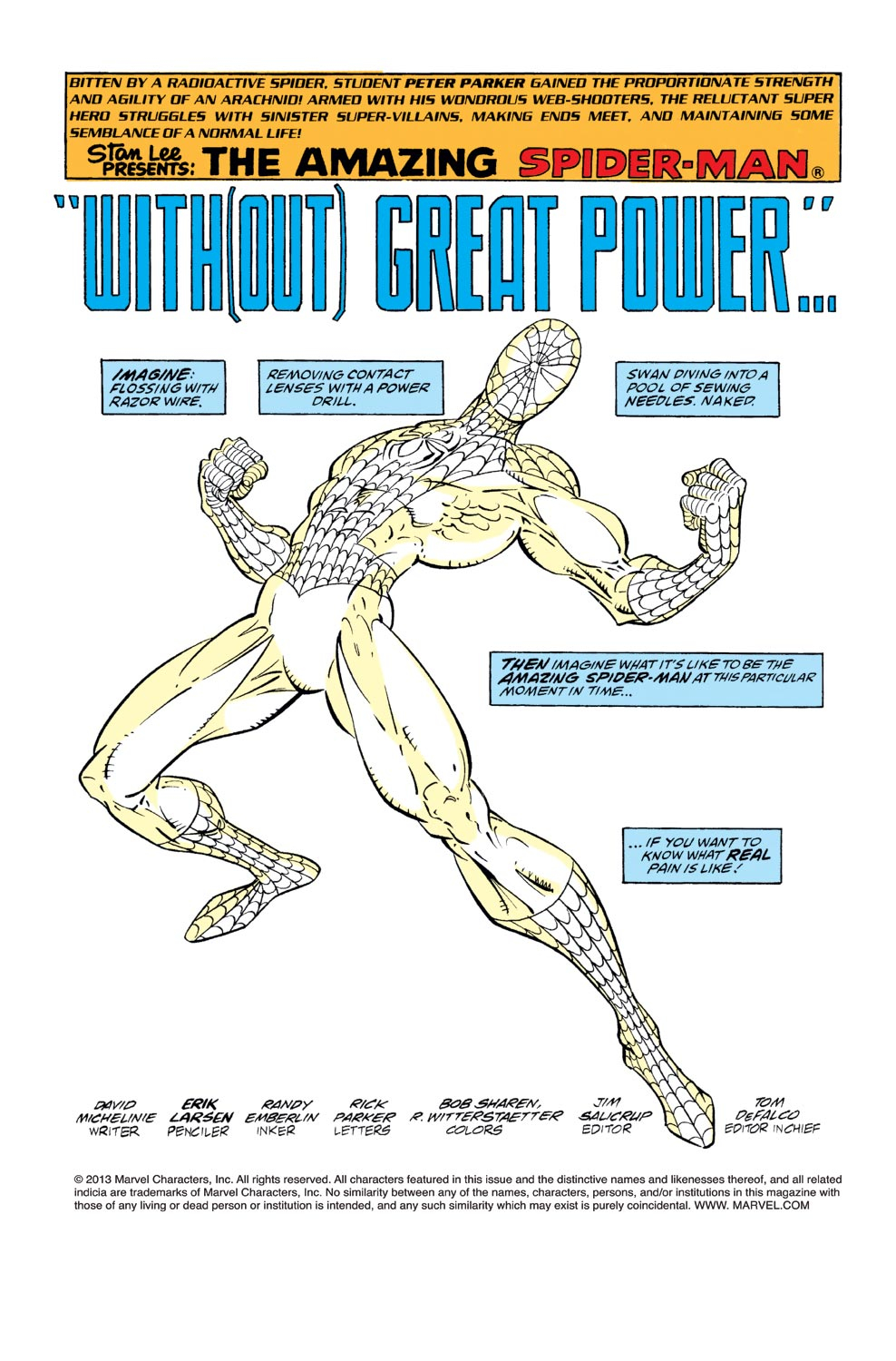 However Spider-Man's biggest weakness on a more general narrative level is neither physical or psychological. It is the infamous "Parker Luck". Things are always going wrong for Spider-Man to the point he's called it the "Parker Luck" and he's said he wouldn't be Spider-Man if things were going smoothly. The Parker Luck is instantly recognizable and was how Spider-Woman knew Peter was back in his body and it wasn't Otto. What's not often commented on is that the Parker Luck is a canonical force, Peter's aura is a bad luck hex formed of genetics and science bordering on the sorcererous according to Dr. Strange. In One More Day Mephisto stated that in nearly all of infinite parallel realities Peter ends up alone and presumably sad. Axiom of Choice demonstrates that any finite fraction of an infinite set will be equal to the infinite set, therefore the only way that makes sense assuming Mephisto is speaking the truth, is that Spider-Man ends up sad and alone in infinitely more realities then not, suggesting he may be mathematically infinitely unlucky! Now granted, this weakness may not be combat applicable. While it's in character for Spider-Man to lose the things he loves from fighting, he rarely actually loses a fight from bad luck. In fact Spider-Man has suggested that the Parker Luck may actually keep him alive so he can get beat up again.