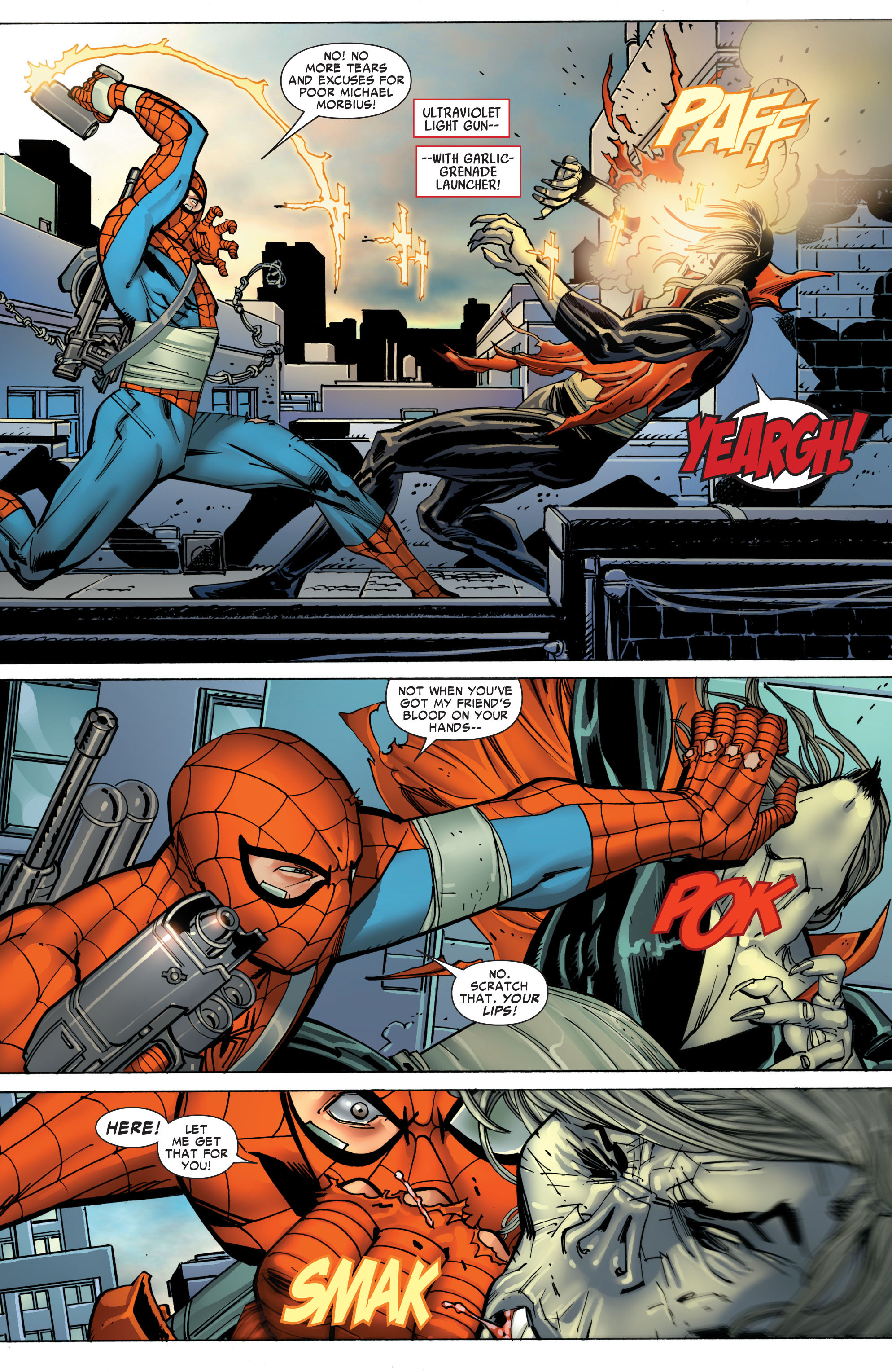 You may recall Morbius the living vampire who hits with the force of an H-Bomb, and is stronger then Spider-Man normally, When Spider-Man let his emotions overwhelm him he was able to overpower that Morbius and an enraged Spider-Man recently beat Morbius via a combination of his raw strength and exploiting his weaknesses. A Spider-Man that was so weak from illness he couldn't direct his webbing, his body was shaking, and couldn't think in complete sentences was able to mercilessly beat down Morbius until Human Torch dragged him off. He has similar feats against other recurring supernatural entities in his life of his like completely stomping Electro when angry, being able to physically overpower the Lizard despite being near-death through thinking about Mary Jane, and able to trade blows with Ezekiel who has the same spider-powers as him despite being weakened by toxins via his determination. Speaking of spider-powers, he also has similar feats against Venom who replicates his spider-powers but is physically stronger. An enraged Spider-Man has beat down Venom and even though he did lose eventually while weakened and damaged determined Spider-Man was able to beat down Venom some. And one time when Spider-Man was barely able to stand he saw Venom threaten Mary Jane and tackled him declaring the gloves were off proceeding to beat him so viciously he almost killed Venom.