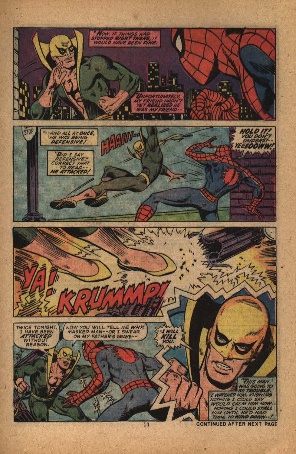 Spider-Man also scales to the feats from other Marvel Heroes, mostly because he seems to have made it his mission to get into a fight with every A, B, C and Z list Marvel Street Leveler and Low to Mid Meta. He is listed as having the same power level as Luke Cage, has harmed him with basic punches and an early comic suggested the two were two evenly matched for either to truly win. He also matched the strength of Post-Adamantium Hammerhead before knocking him out with one punch, the same Hammerhead having easily withstood an assault from an enraged Luke Cage. Luke Cage survived, if barely, the epicenter of a small nuclear explosion. He was able to pressure Iron Fist with his might and later drew blood from him with a punch. Iron Fist has made his fist glow like an exploding star before hitting like an H-Bomb and defeated Radion whose power was measured in hundreds of megatons. Spider-Man has one shot Deadpool who withstood ground zero of a nuclear explosion. A punch from Spidey harmed Carol Danvers, seeming to even draw blood (unsure if blood or saliva...coming from her mouth but it looks red). In base form Carol tanked a multi-city block level explosion with less damage and survived a tachyon blast that could destroy the top of a volcano. Spidey also one-shot Armored Scorpion who tanked being punched seven miles downwards by Carol supporting the scaling. Spider-Man has also beat his amazing friend Iceman. Iceman has created a large glacier calced at requiring about 200 tons of tnt and created an entire ice city. Working together, using Iceman's ice and Spidey's strength, Spidey was able to beat down the fiery Shadrac when Shadrac was earlier able to easily melt away Iceman's ice alone.