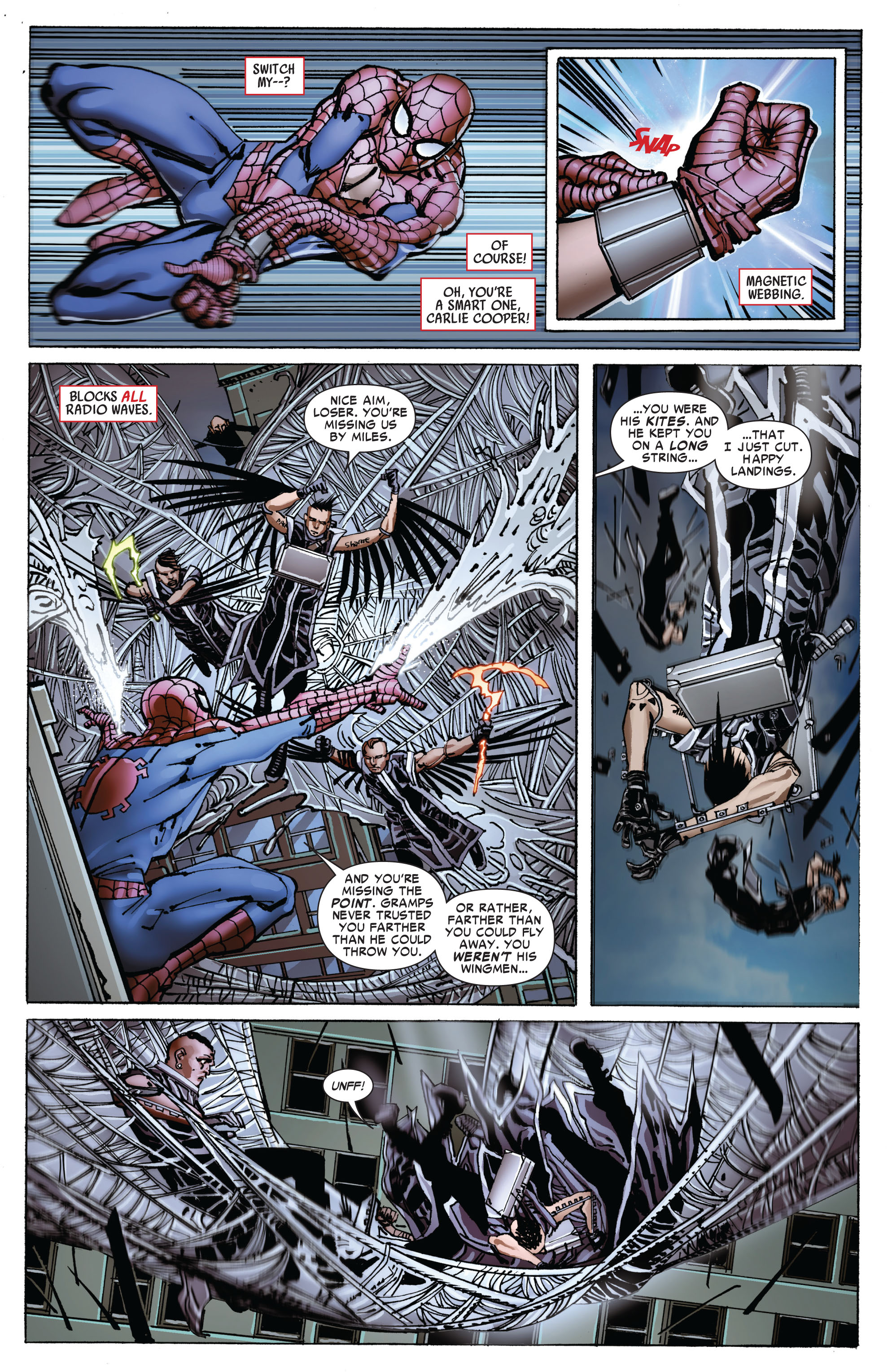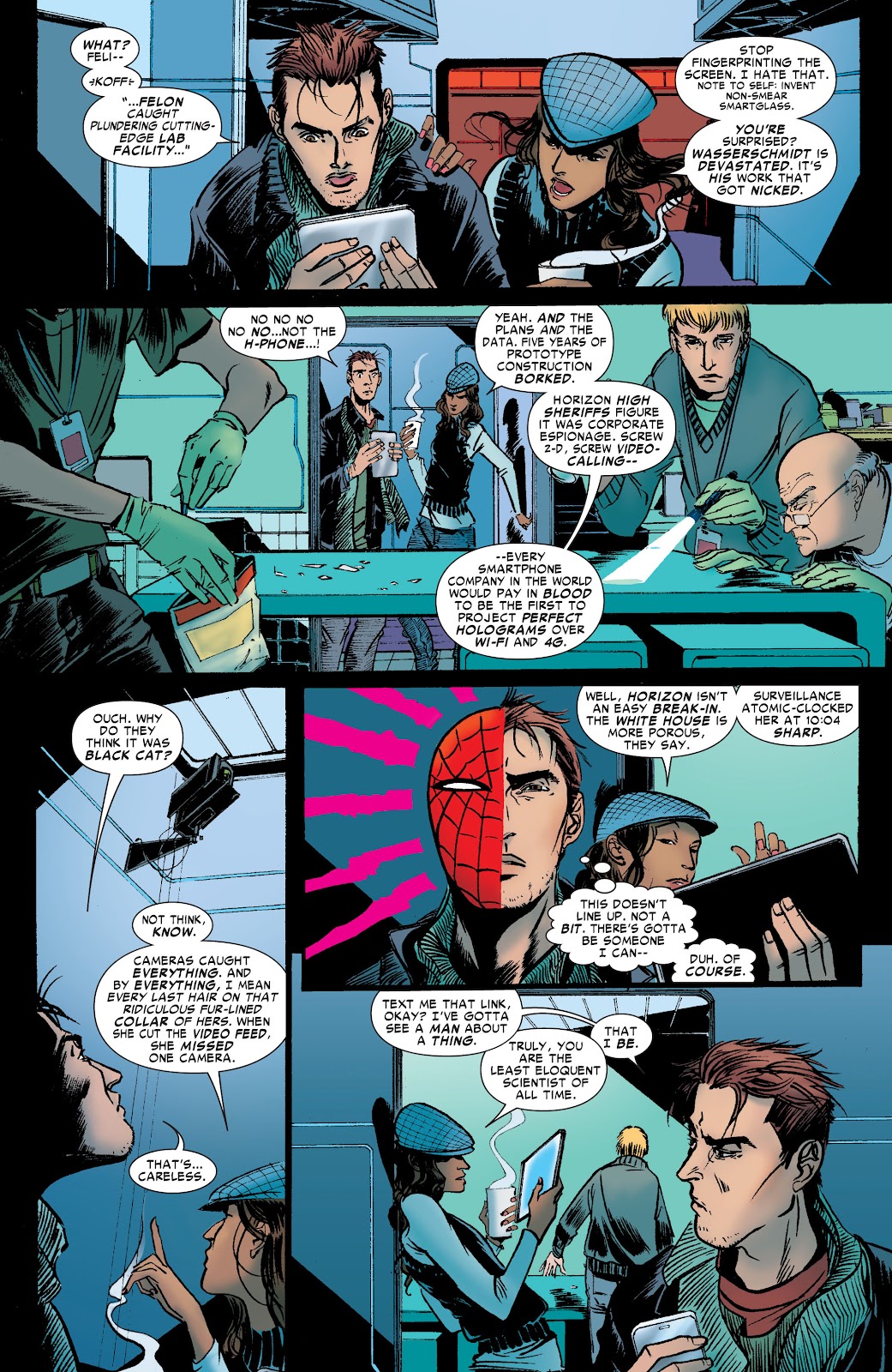 While his combat skill has radically improved, Spider-Man has always been a consistently good shot due to rigorous early hours of off-panel practice. He lined his web up perfectly with a hole and a control panel button, hits a helicopter with a tracer despite his injured arm and was able to lob a spider-tracer onto a truck with "unerring accuracy". His accuracy has allowed him to tag people faster then himself including Screwball, Speed Demon, and Lightmaster. He's also quite proficient with stealth. While lower level stealth feats of sneaking past people undetected are common such as sneaking into Felicia's room despite the guards looking for him and tagging a criminal with a tracer as Peter Parker without being seen he also has some more impressive feats such as sneaking into Latveria and causing Daredevil to call him impossibly quiet. Not bad for a guy who thinks this is stealth.