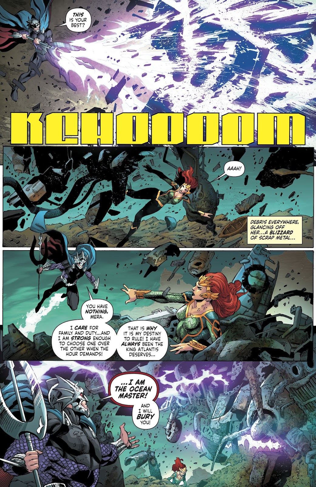 Ocean Master has been stricken full force by Aquaman on several occasions without dying and so should scale to the same continent level potency as his physical strength. He also has been stricken full force by Rebirth Mera's hydrokinesis and was able to continue fighting. People get it confused thinking that Mera was "weakened" during this encounter and so Orm doesn't actually scale to Mera's hydrokinesis. However, while Mera was weakened during "Mera: Queen of Atlantis", it's not that she can't use it's full force but that if she does it very quickly fizzles out temporarily, a problem of stamina not potency. This is exactly what it seen in her fight with Orm where she throws him with her water's full force but her hydrokinesis suddenly fades after the impact. The same Mera has, with great effort, held up an entire ocean with her hydrokinesis and protected Atlantis from a global flood supporting Ocean Master's physical stats being continental.