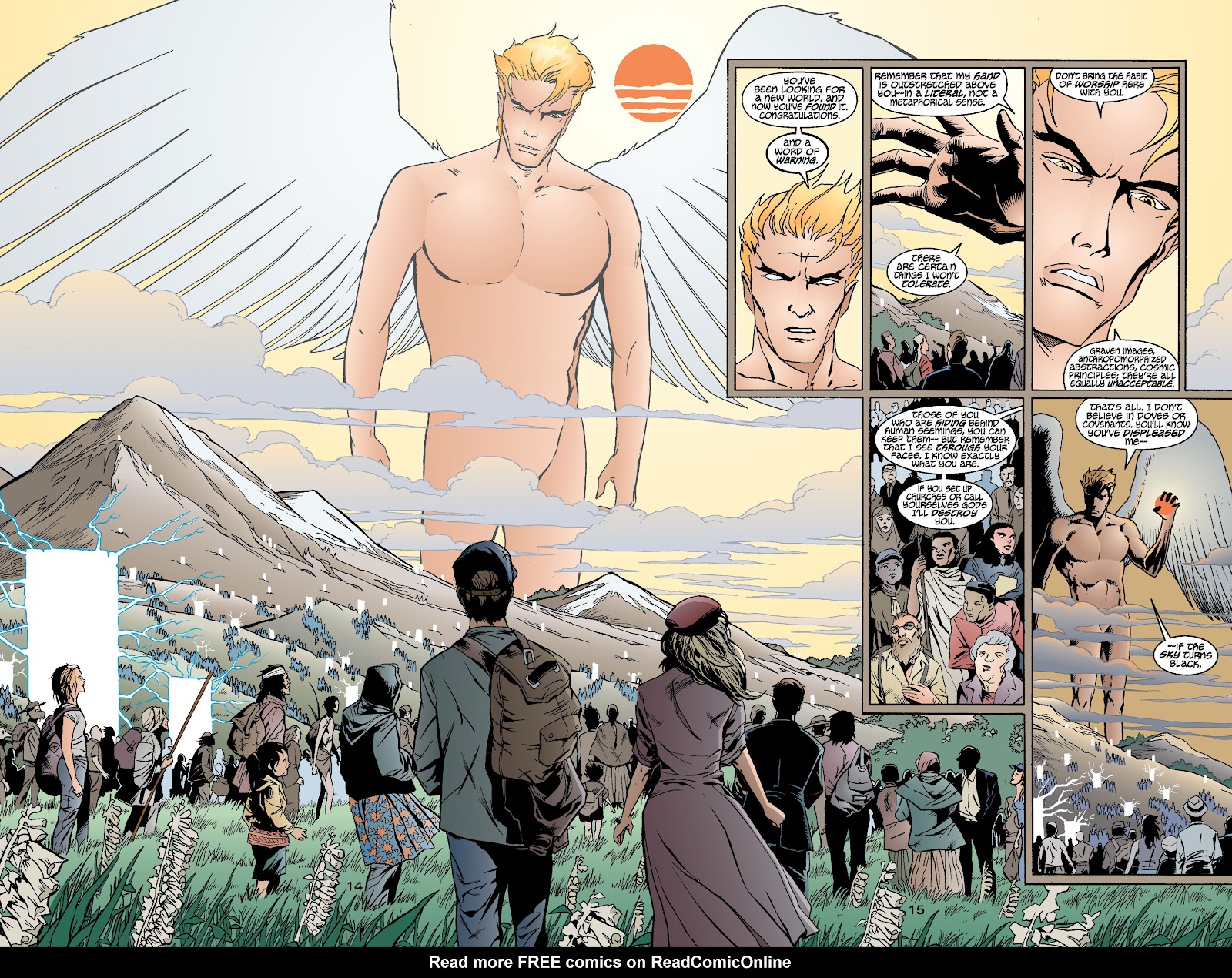 Despite how powerful he is, Lucifer does have some pretty clear weaknesses. He does not have the absolute power of Michael. This means he can't create something from nothing and that while he is one of the most powerful entities in DC Comics, his power is not absolute. He can and has been overpowered, most famously by his brother Michael in the War in Heaven, and de-powered. Most often, seemingly due to his association with Hell, Lucifer is consistently depowered by holy or divine powers. Etrigan as a baby was able to harm Lucifer by shooting him with fire in a cross shape and in the realm of the Shinto Kami, Lucifer was completely powerless and mortal. He should hypothetically have the other demon weaknesses such as silver or mystical cold, though those don't seem to be nearly as extreme and to threaten Lucifer with those, one would need to be relatively close to him regardless. Lucifer also has a specific limitation in regards to destiny or fate manipulation. The Basanos, a flawed imitation of Destiny of the Endless' power were a threat to Lucifer. This is a part of Lucifer's overarching narrative. As a being with absolute willpower but not absolute power, his power to his perception amounts to zero, and he is trapped to the plan of the Presence. After escaping the Void at the end of Volume 1, it seemed initially that he had escaped this weakness, but in Volume 3, he is is once again enemy of fate. Even at the end of Volume 1, The Presence compares Lucifer and himself to Sun Wukong and Buddha
