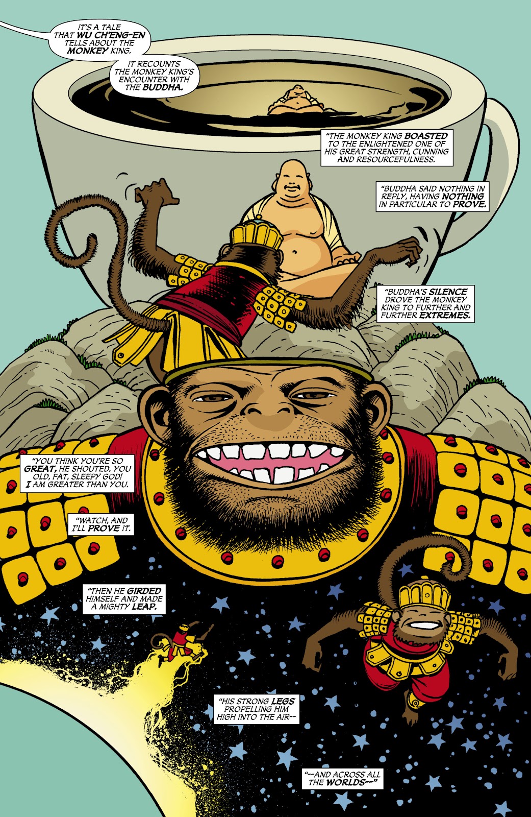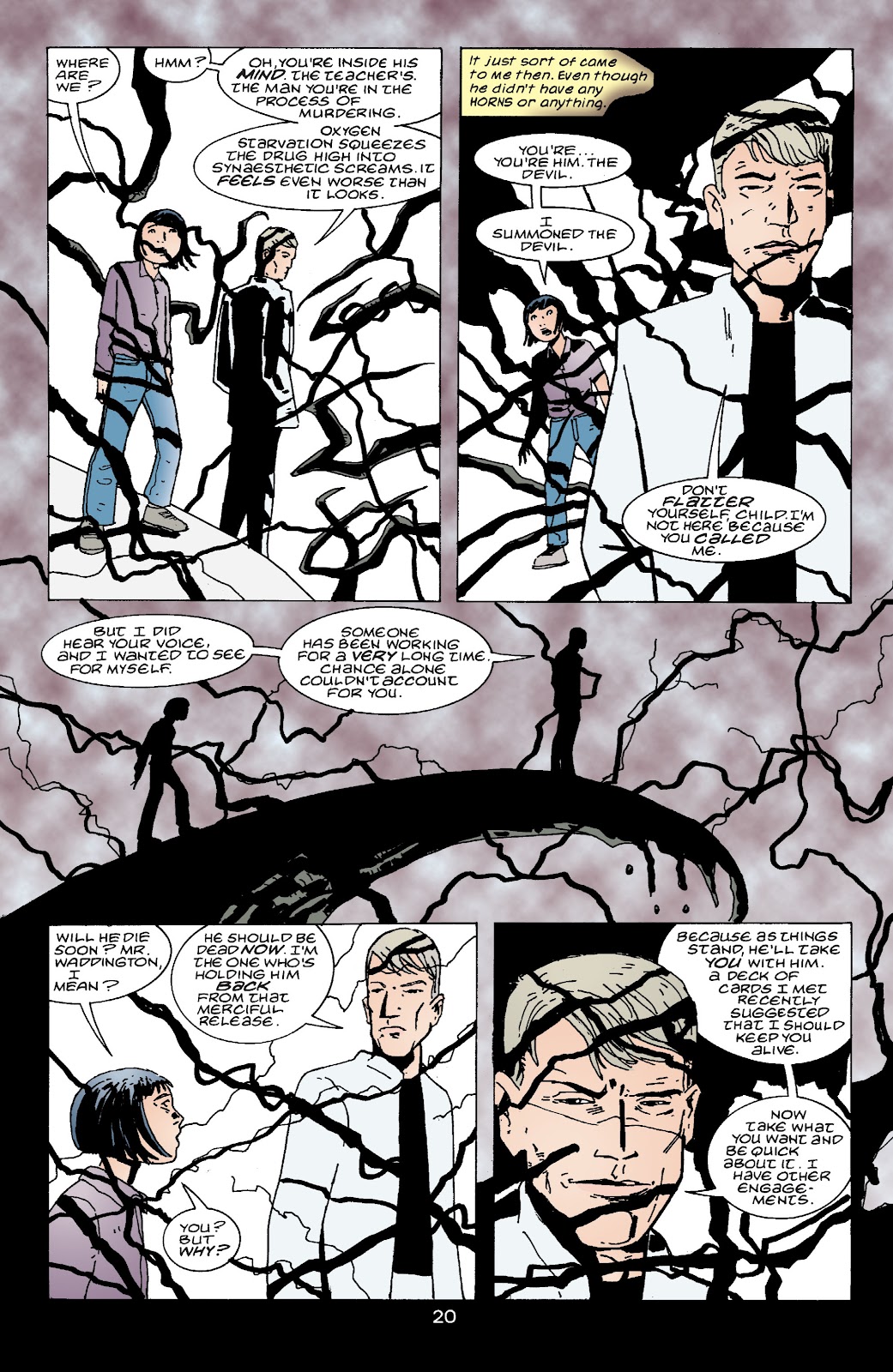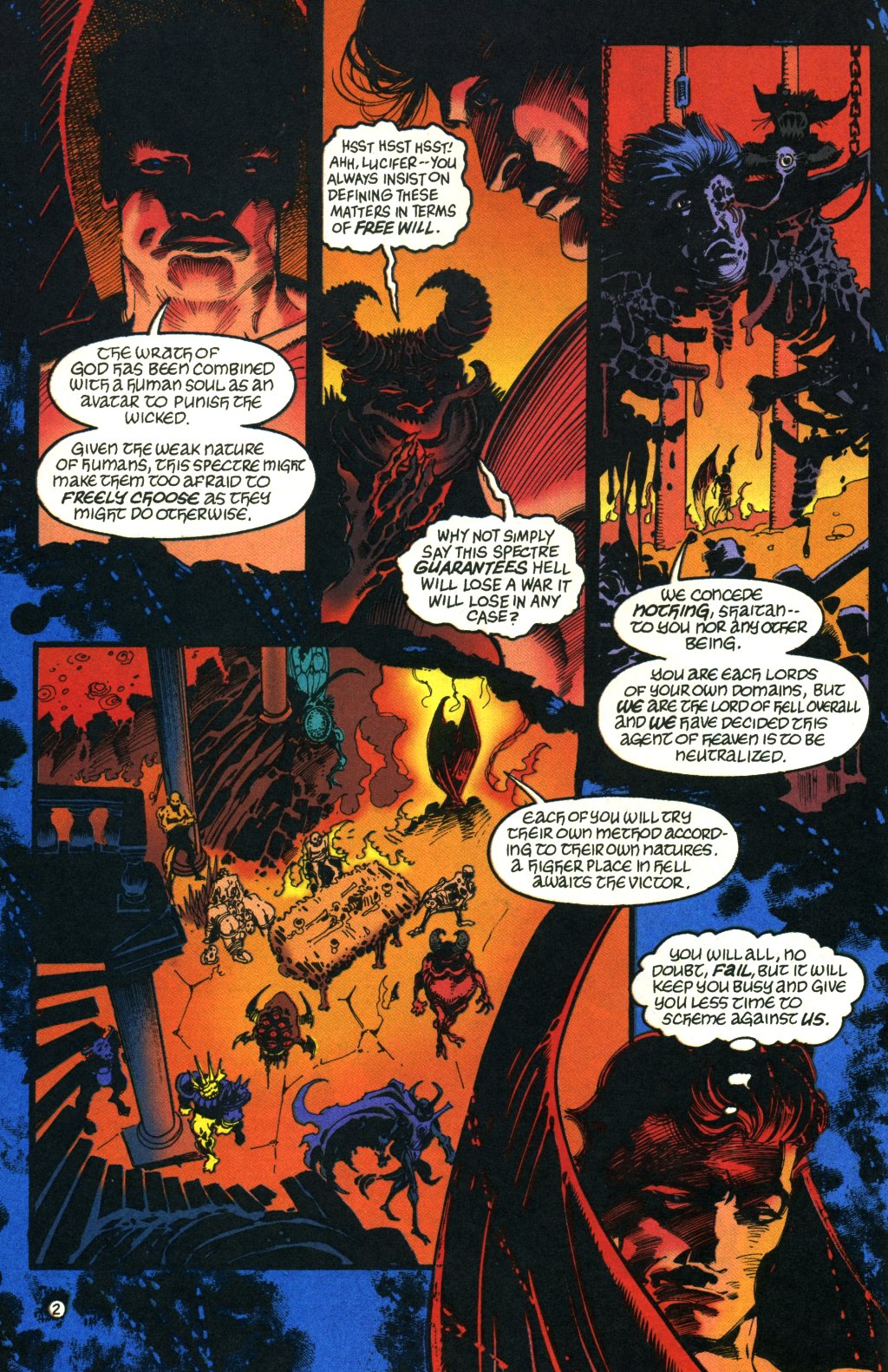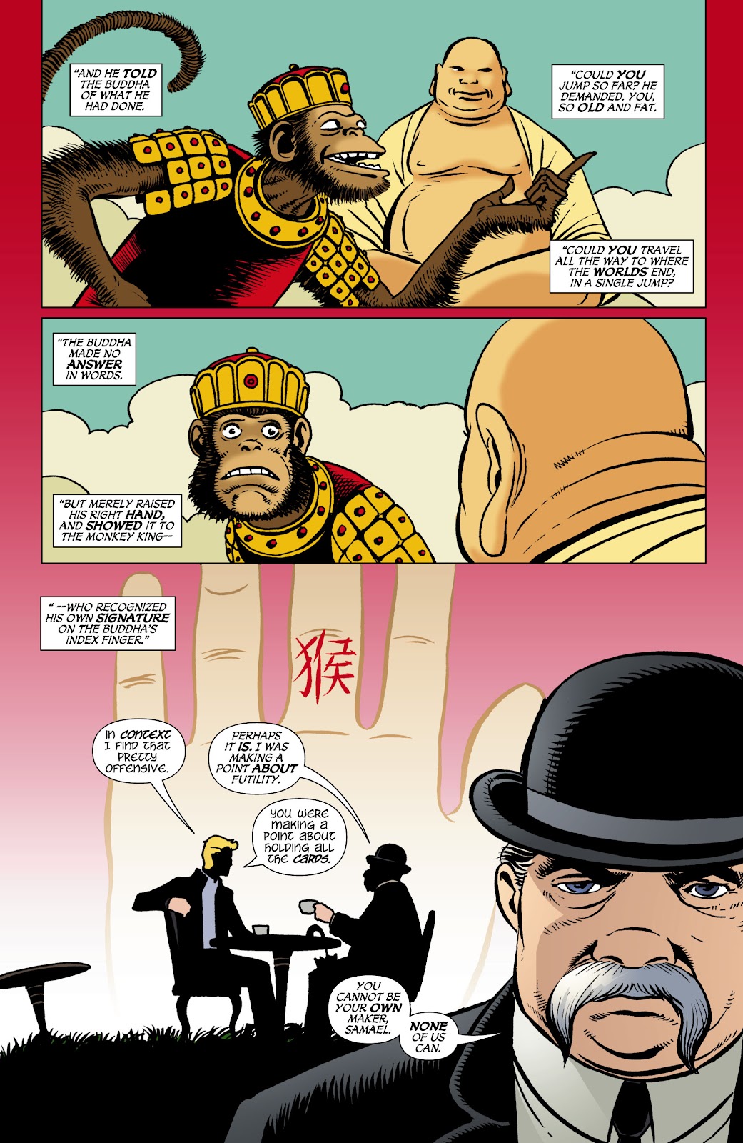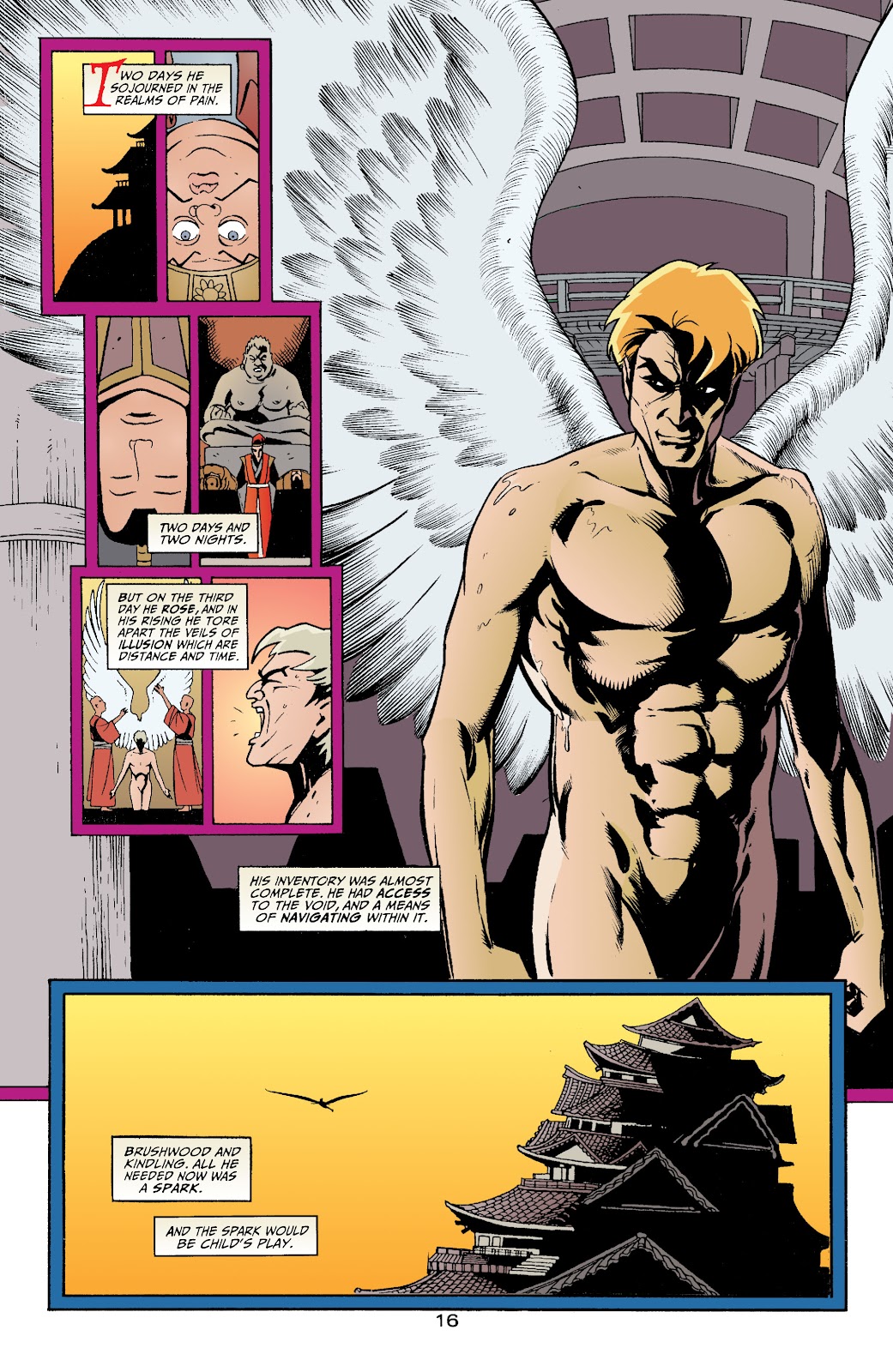 Despite how powerful he is, Lucifer does have some pretty clear weaknesses. He does not have the absolute power of Michael. This means he can't create something from nothing and that while he is one of the most powerful entities in DC Comics, his power is not absolute. He can and has been overpowered, most famously by his brother Michael in the War in Heaven, and de-powered. Most often, seemingly due to his association with Hell, Lucifer is consistently depowered by holy or divine powers. Etrigan as a baby was able to harm Lucifer by shooting him with fire in a cross shape and in the realm of the Shinto Kami, Lucifer was completely powerless and mortal. He should hypothetically have the other demon weaknesses such as silver or mystical cold, though those don't seem to be nearly as extreme and to threaten Lucifer with those, one would need to be relatively close to him regardless. Lucifer also has a specific limitation in regards to destiny or fate manipulation. The Basanos, a flawed imitation of Destiny of the Endless' power were a threat to Lucifer. This is a part of Lucifer's overarching narrative. As a being with absolute willpower but not absolute power, his power to his perception amounts to zero, and he is trapped to the plan of the Presence. After escaping the Void at the end of Volume 1, it seemed initially that he had escaped this weakness, but in Volume 3, he is is once again enemy of fate. Even at the end of Volume 1, The Presence compares Lucifer and himself to Sun Wukong and Buddha